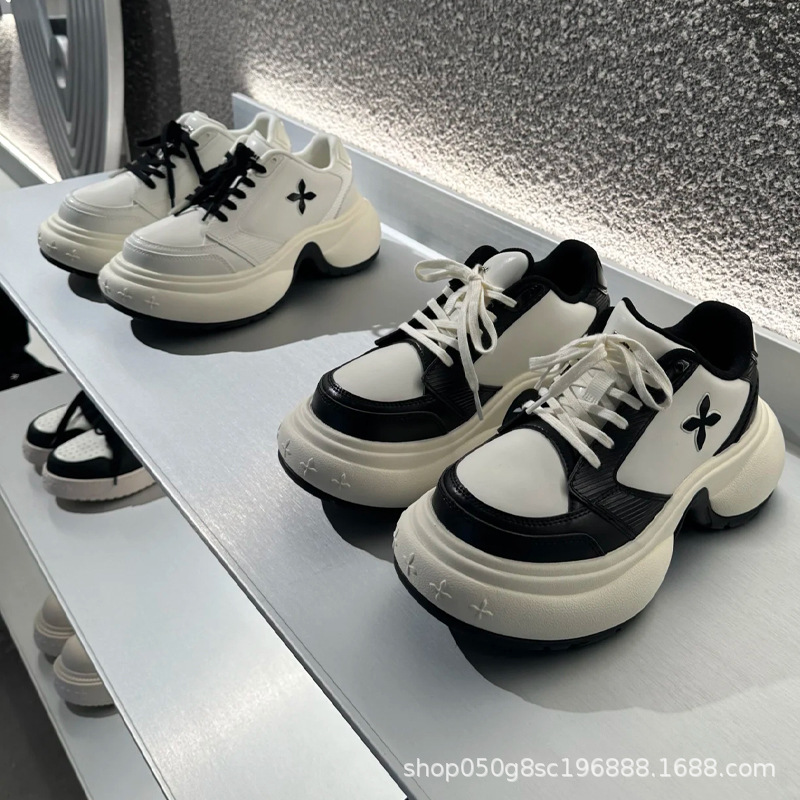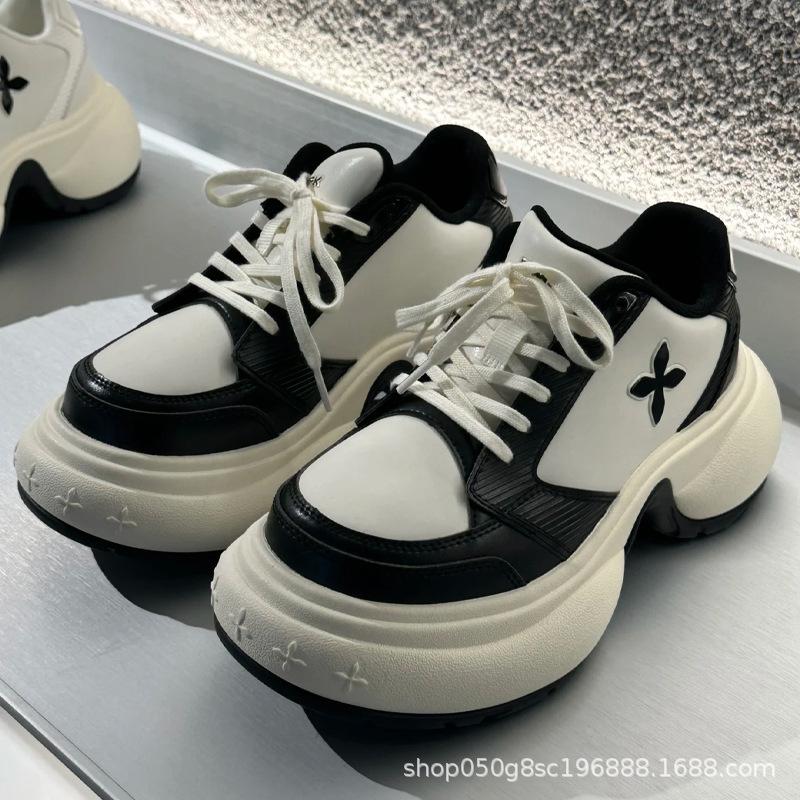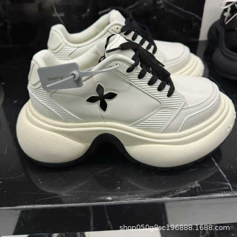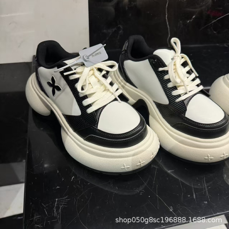 재고 있음 SMFR 리플 하이힐 스니커즈 흑백 배색 두꺼운 밑창 키높이 캐주얼 슈즈 다용도 여성화 25 봄 신상품