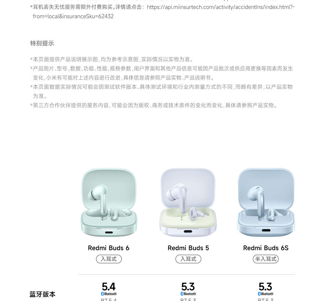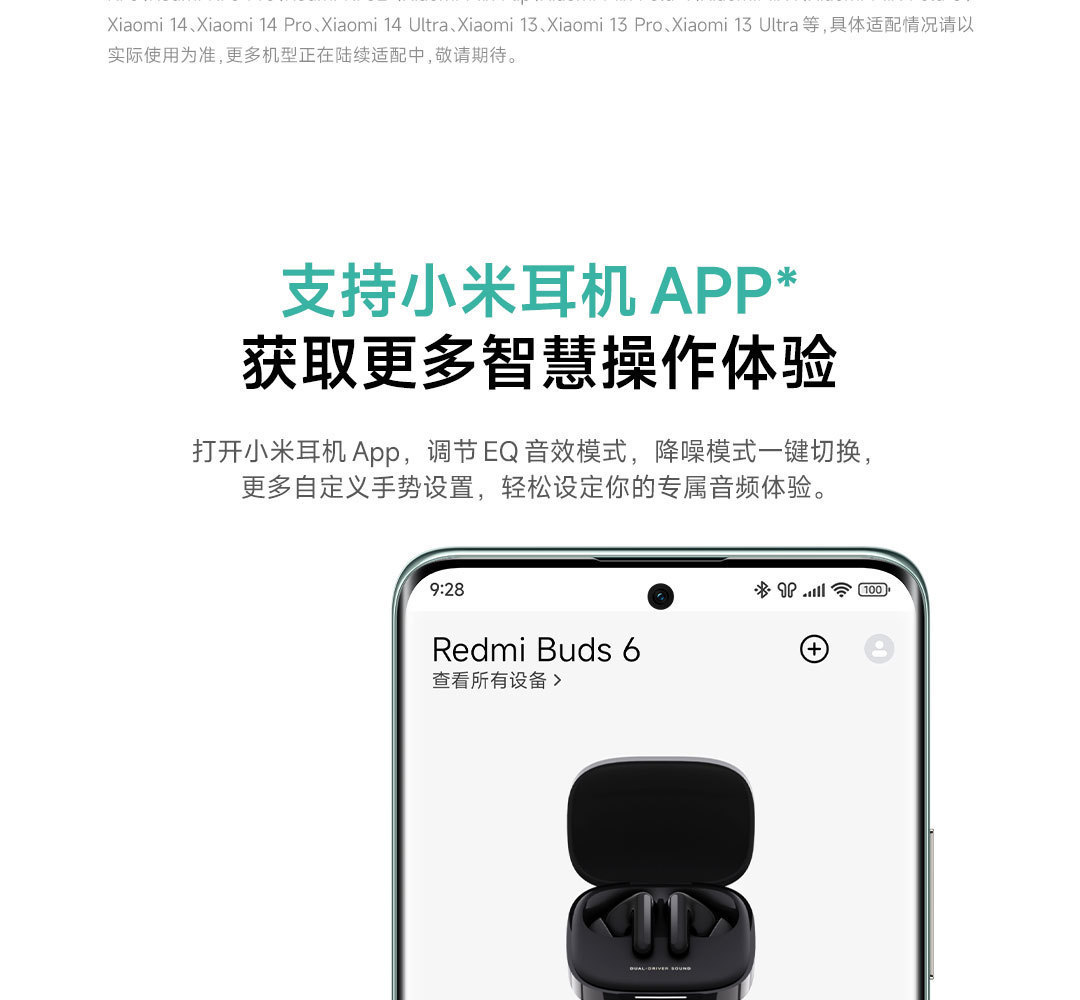 Redmi Buds 6 이어폰 무선 블루투스 헤드셋 Redmi 세미 인 이어 소음 감소 긴 헤드폰 Android IOS 헤드셋스토어 가기