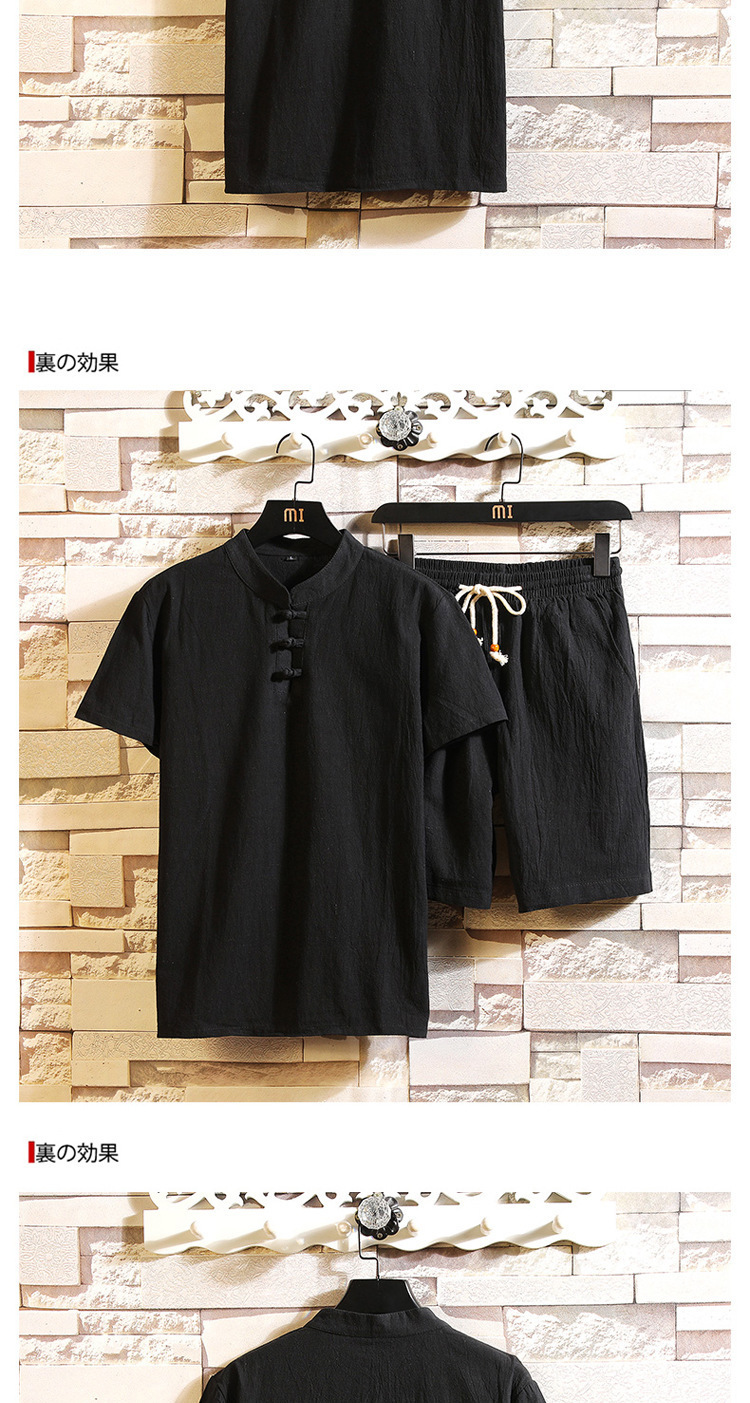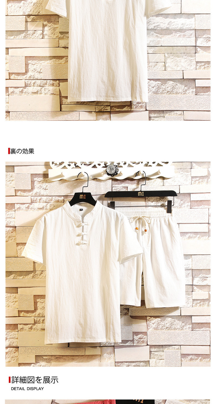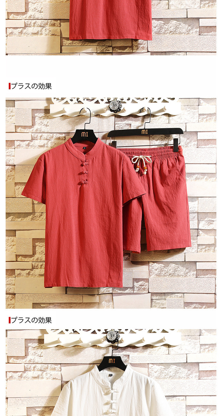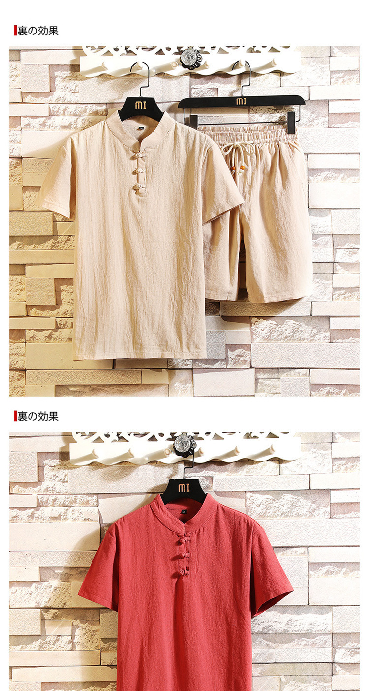 2025 여름 남성 리넨 반바지 반팔 세트 중국 스타일 코튼 및 리넨 플러스 사이즈 버튼 레트로 캐주얼 투피스 세트스토어 가기