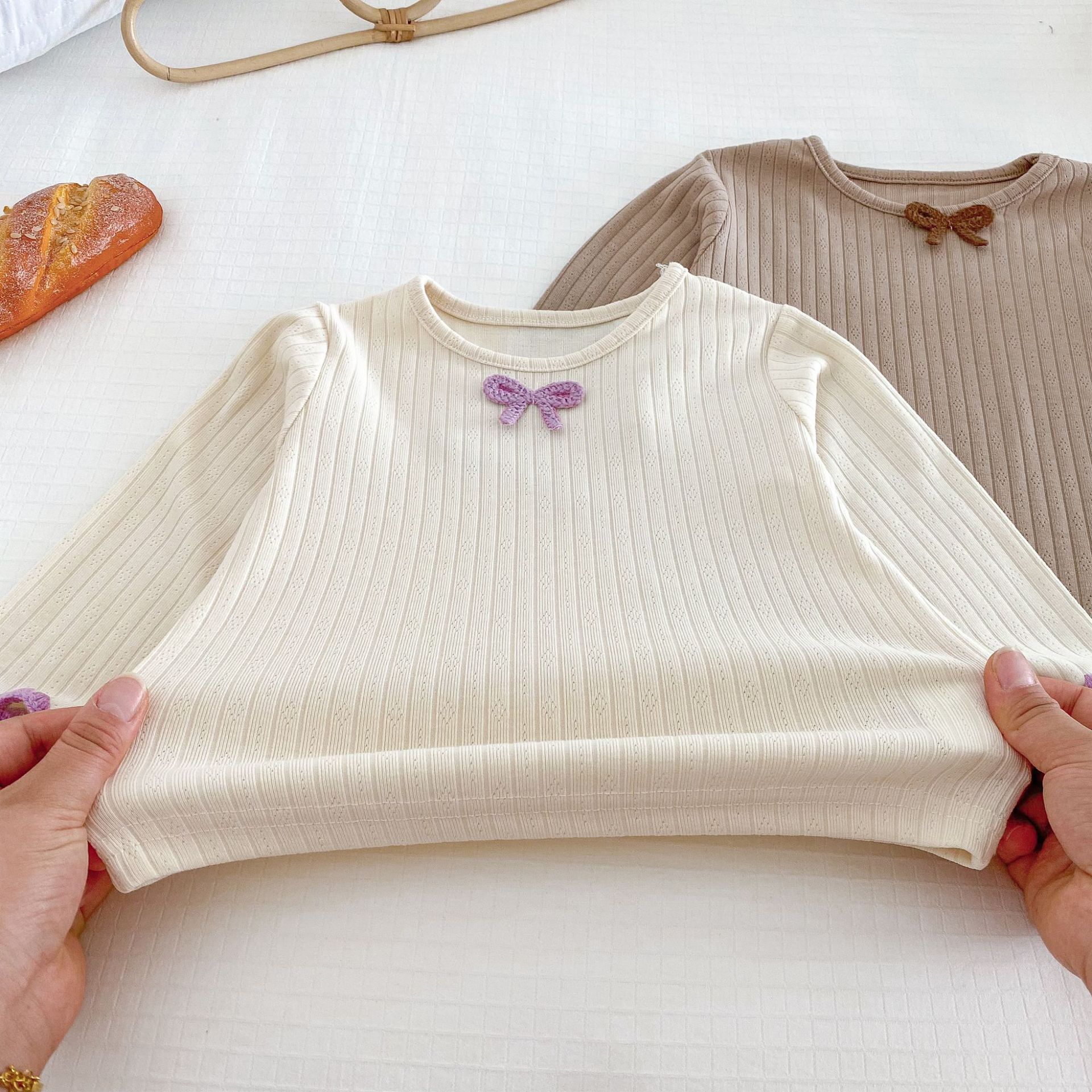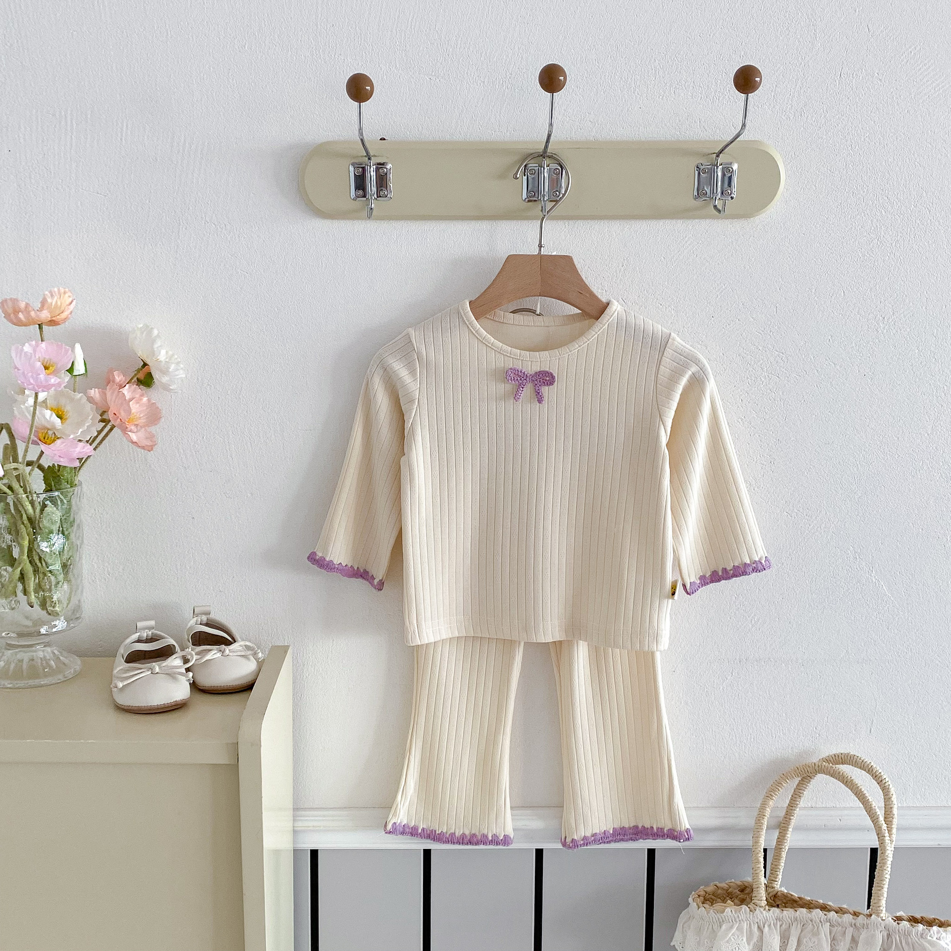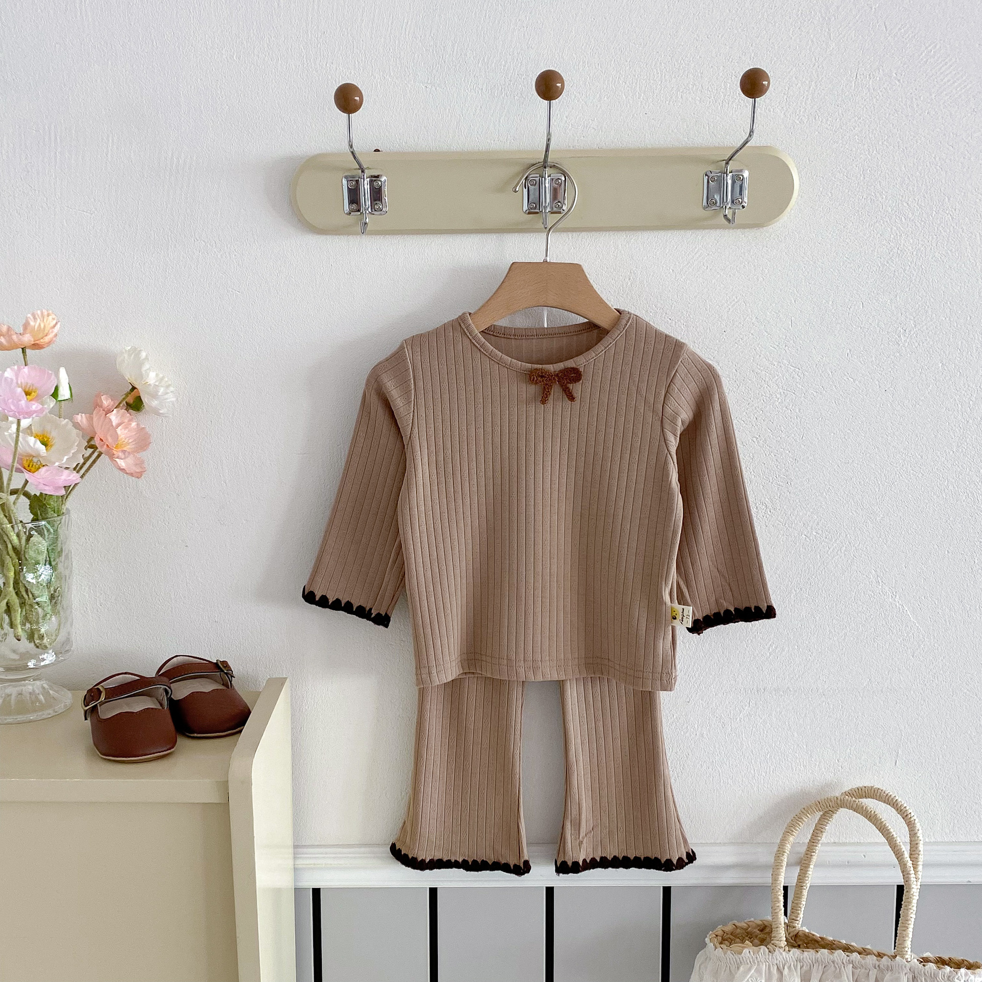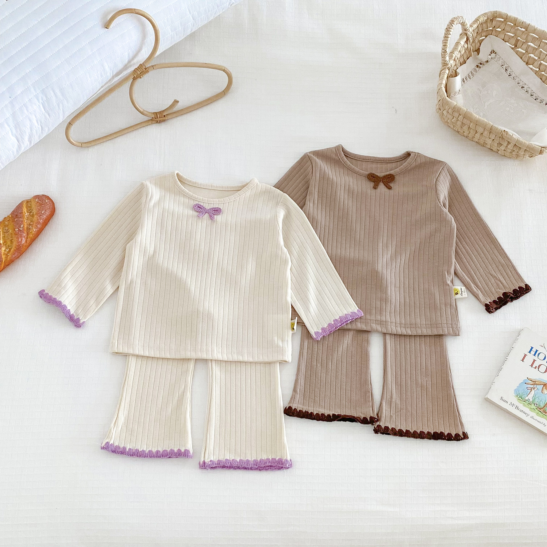 여아용 세트 2025 가을 스타일 아기용 하의 홈웨어 분리형 하의 상의 플레어 팬츠 투피스 세트스토어 가기