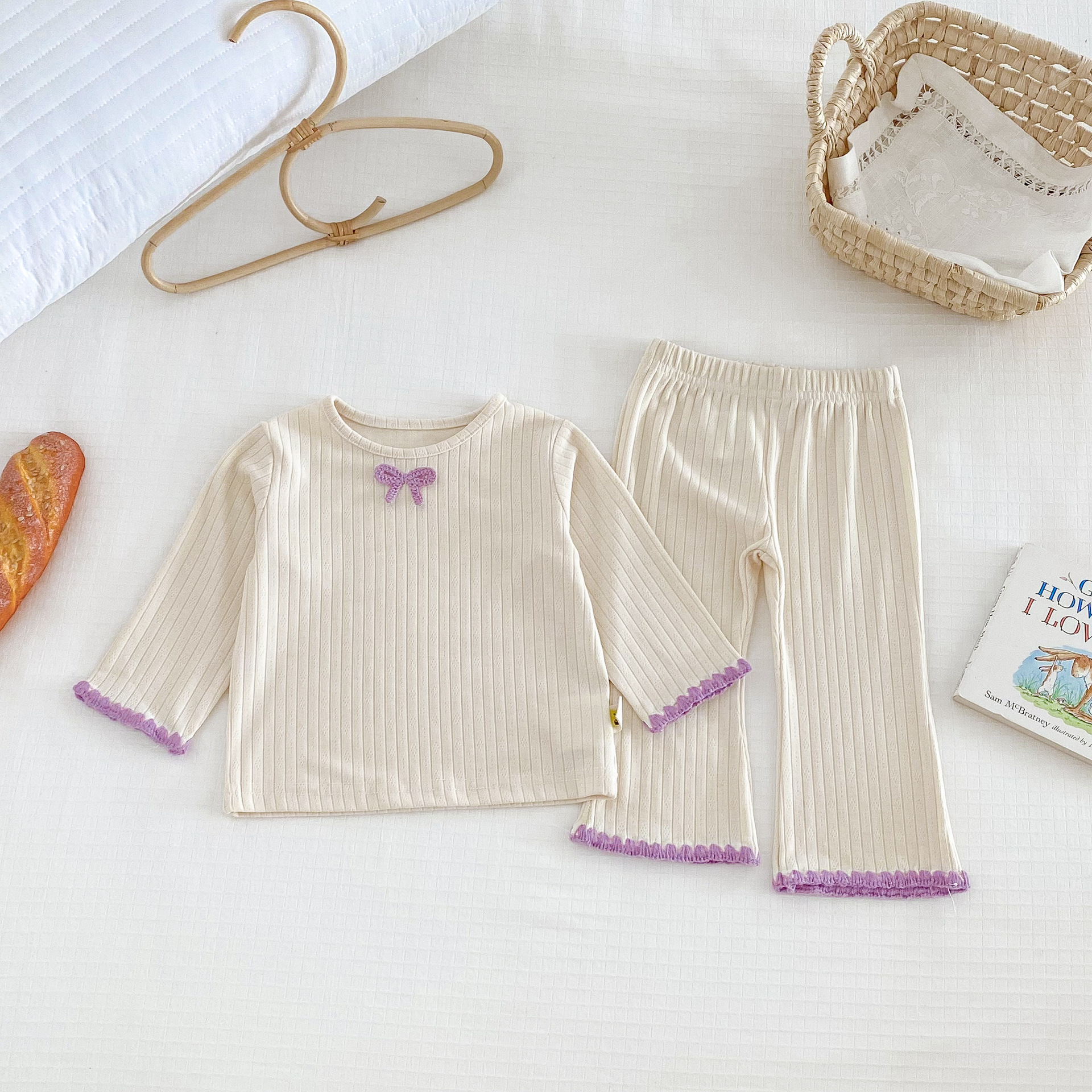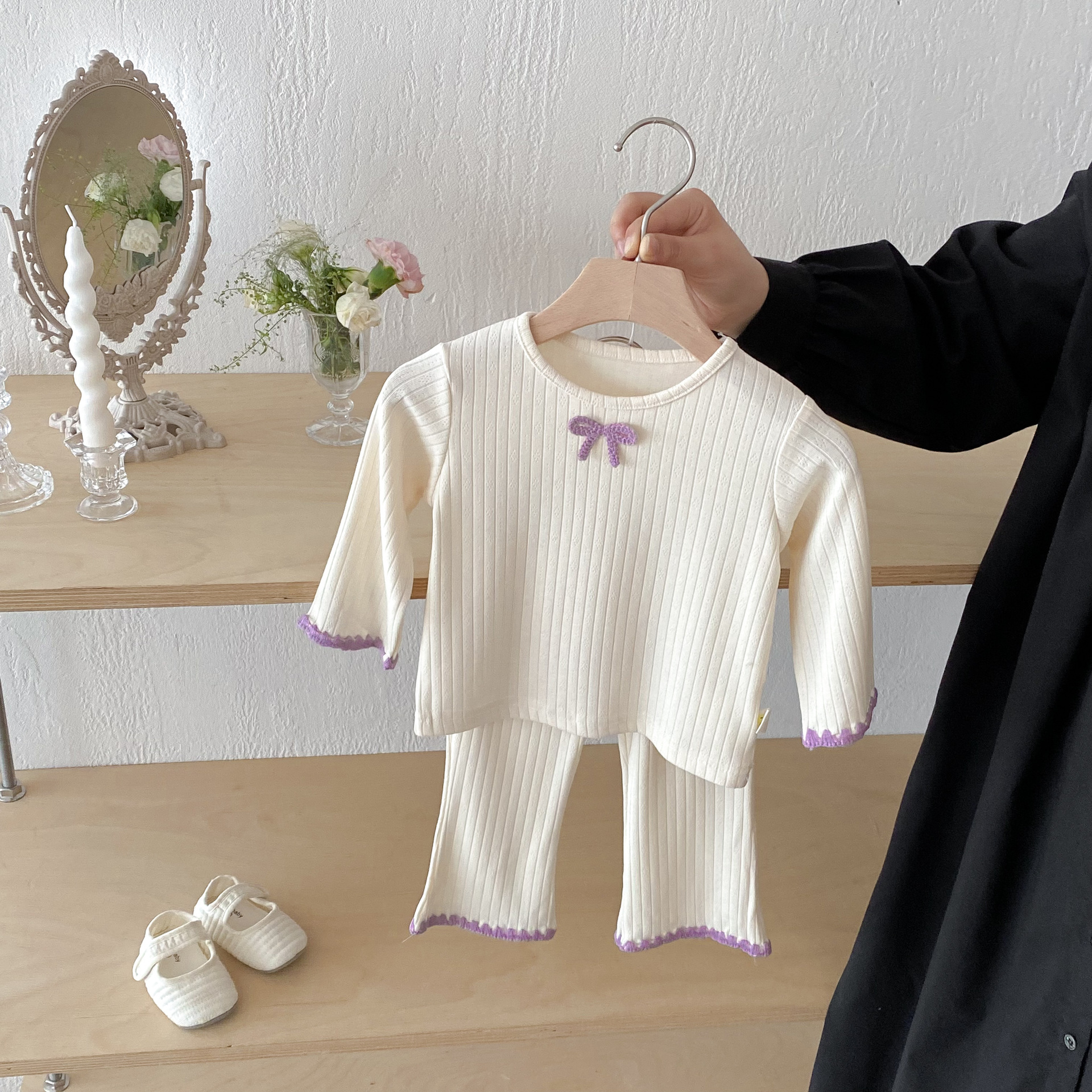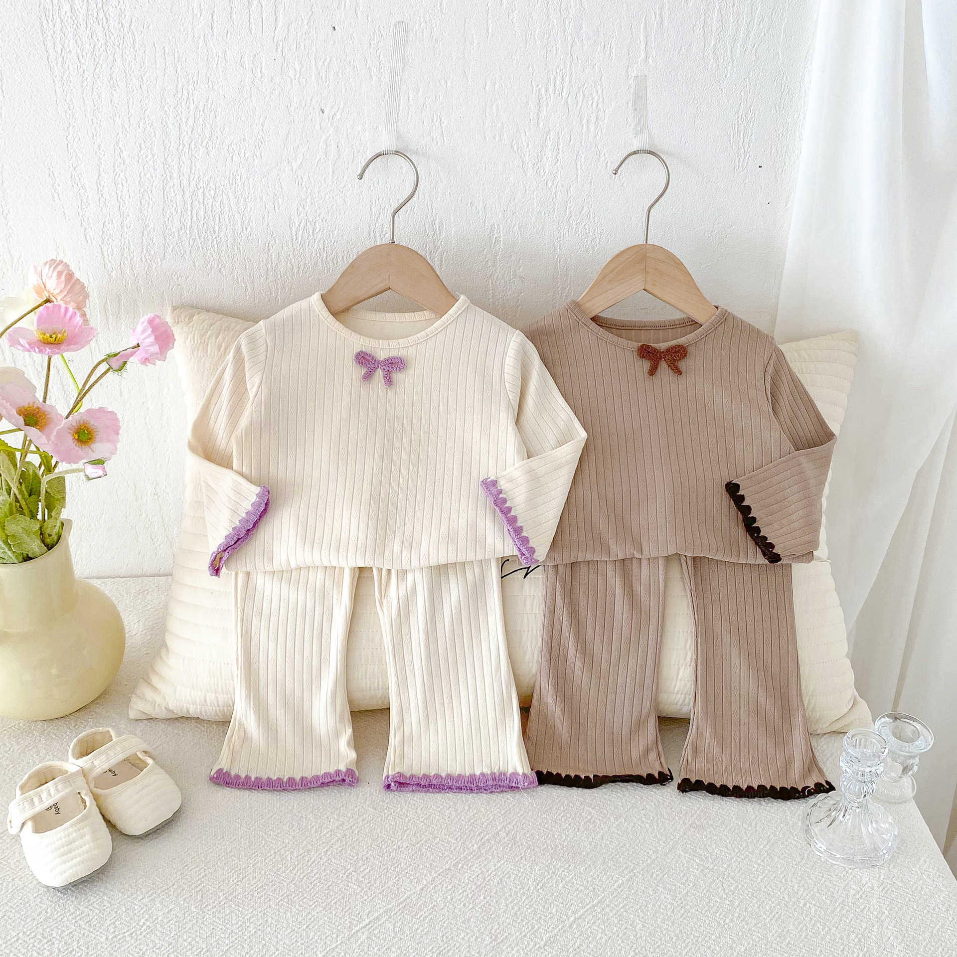 여아용 세트 2025 가을 스타일 아기용 하의 홈웨어 분리형 하의 상의 플레어 팬츠 투피스 세트