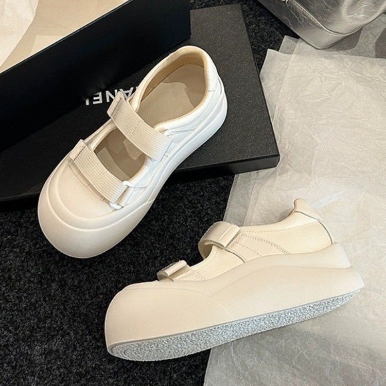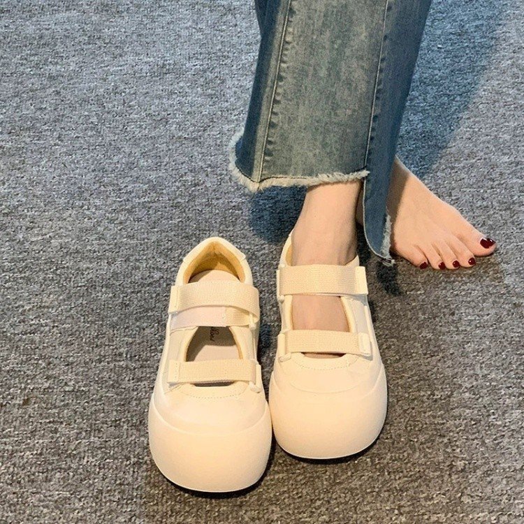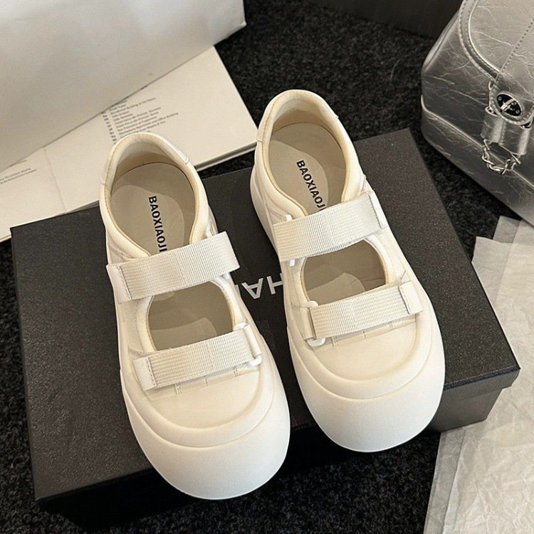 여성을위한 흰색 신발 메리 제인 샌들 2024 여름 새로운 스타일 벨크로 두꺼운 밑창 다목적 빅 투 슈즈 캐주얼 신발