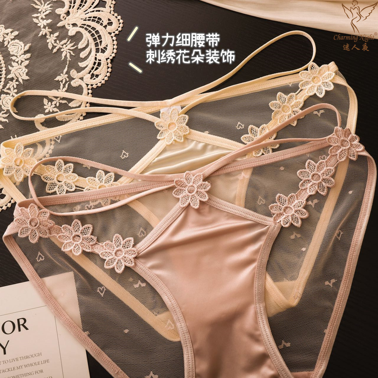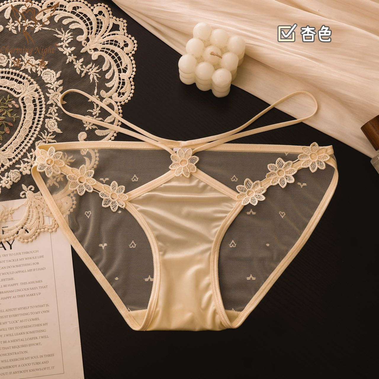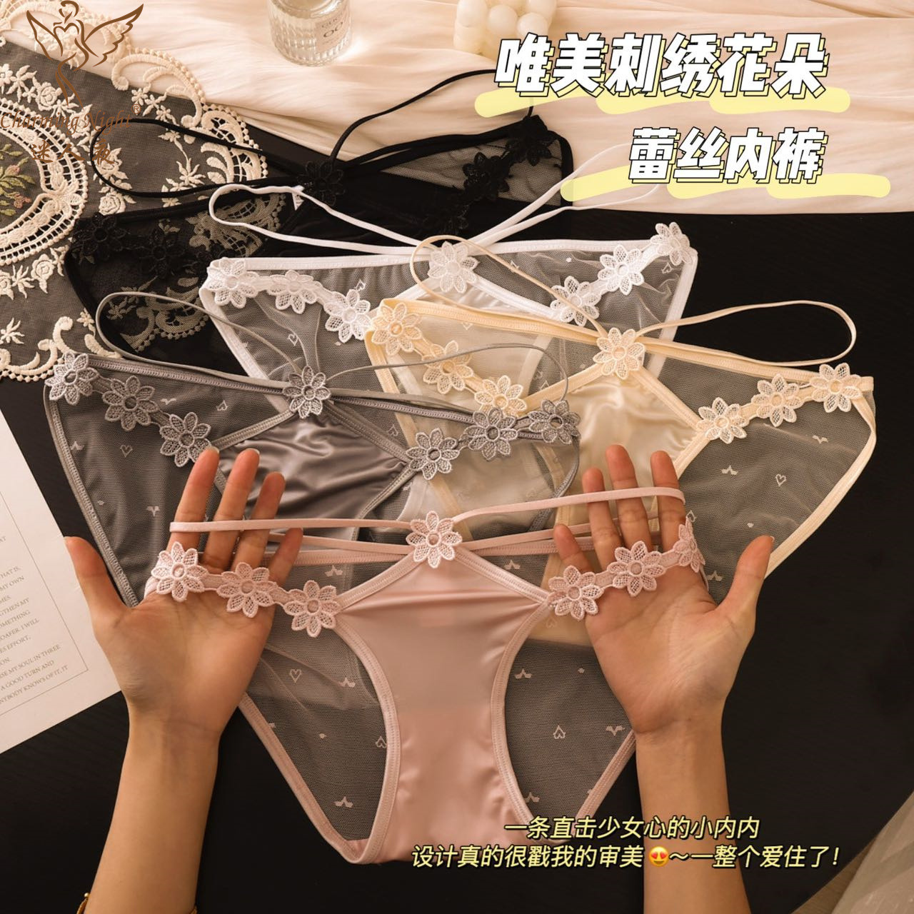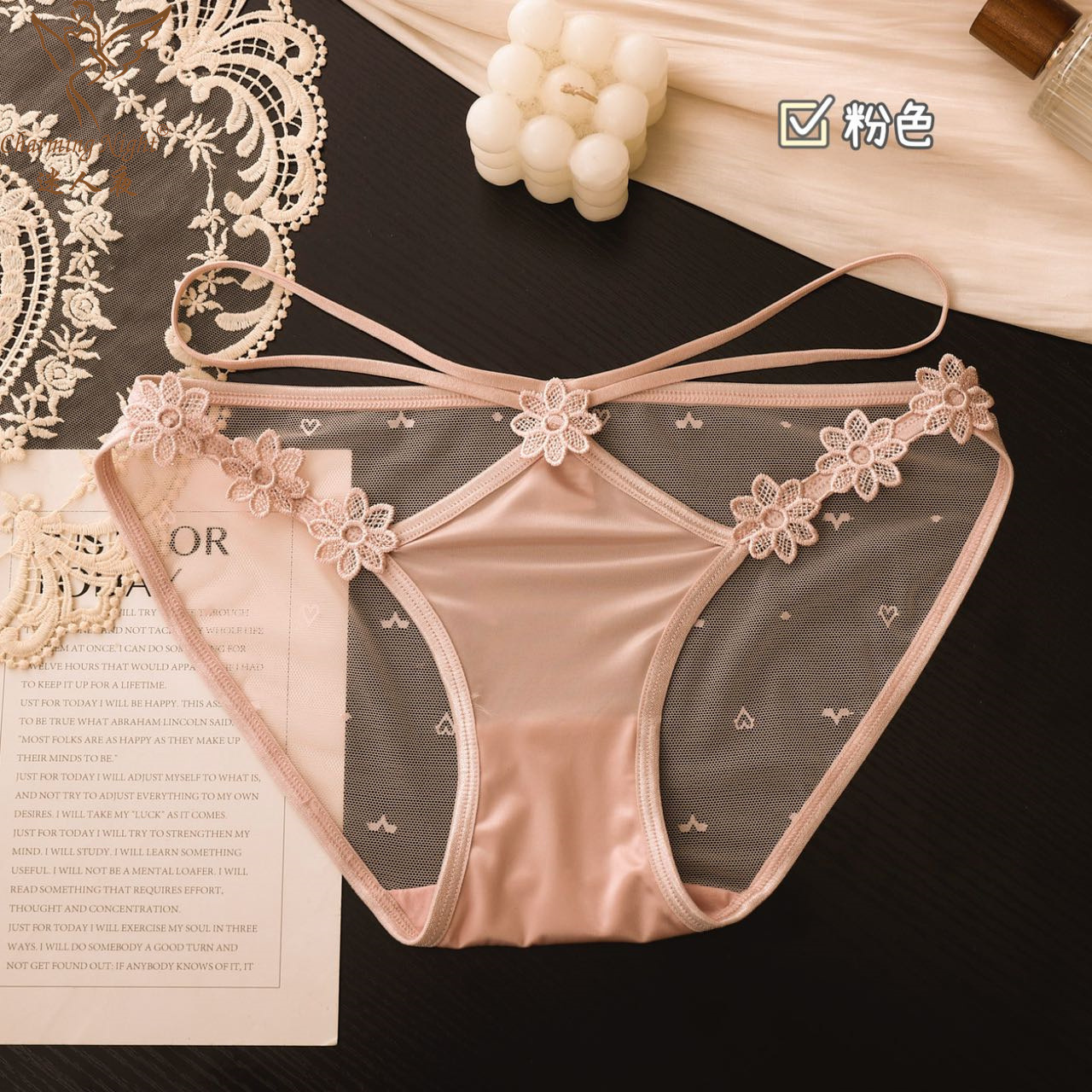 달콤한 패션 3 차원 자수 레이스 속옷 여성의 순수한 섹시한 낮은 허리 투명 메쉬 속옷 여성용 속옷스토어 가기