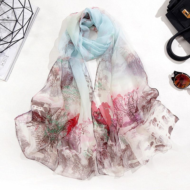 대외 무역 봄과 여름 얇은 풍경 가족 조든 롱 스카프 선스크린 쉬폰 비치 스카프 여성 에어컨 목도리 스카프스토어 가기