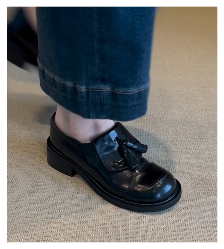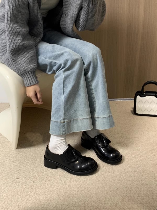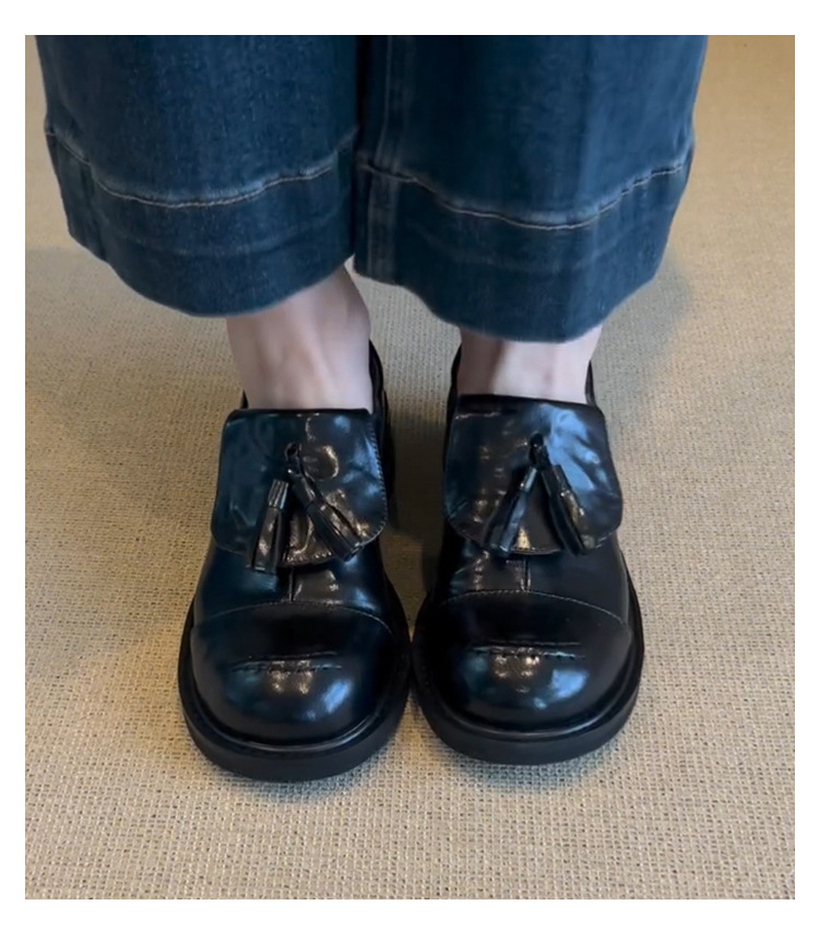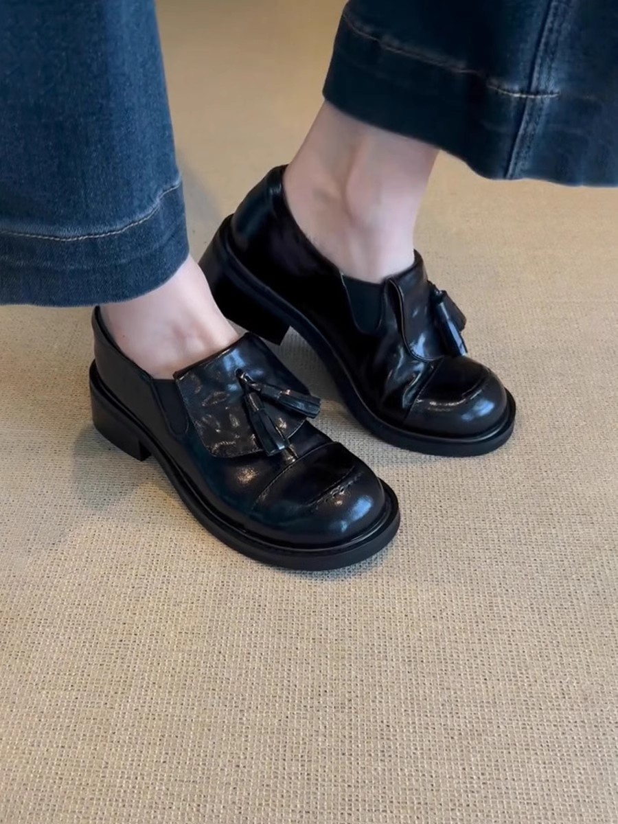Cowhide 버전 ~ 레트로 라운드 헤드 술 로퍼 기모 싱글 레이어 신발 여성 올 매치 영국 바람 대학 두꺼운 밑창 작은 가죽 신발스토어 가기