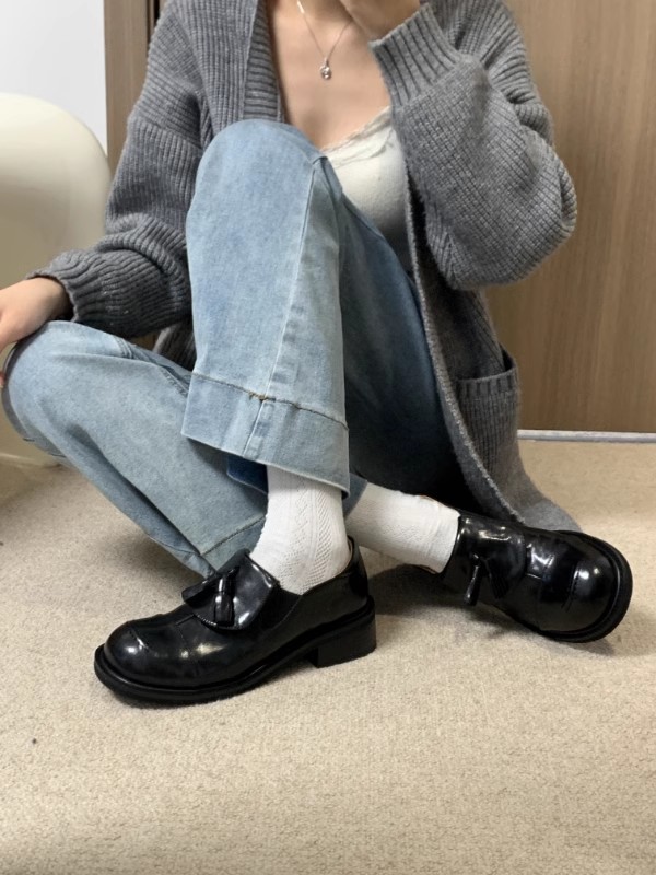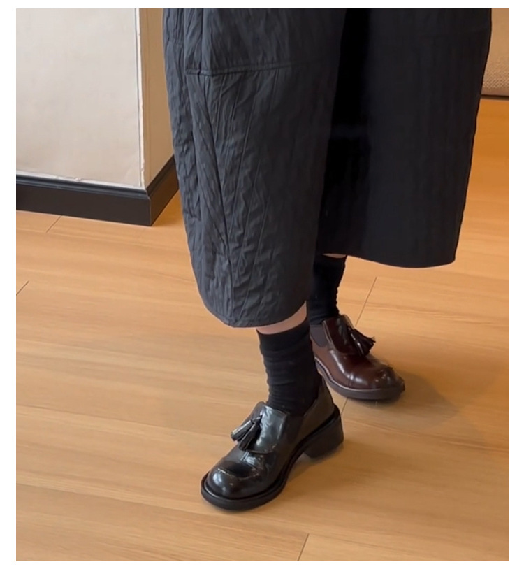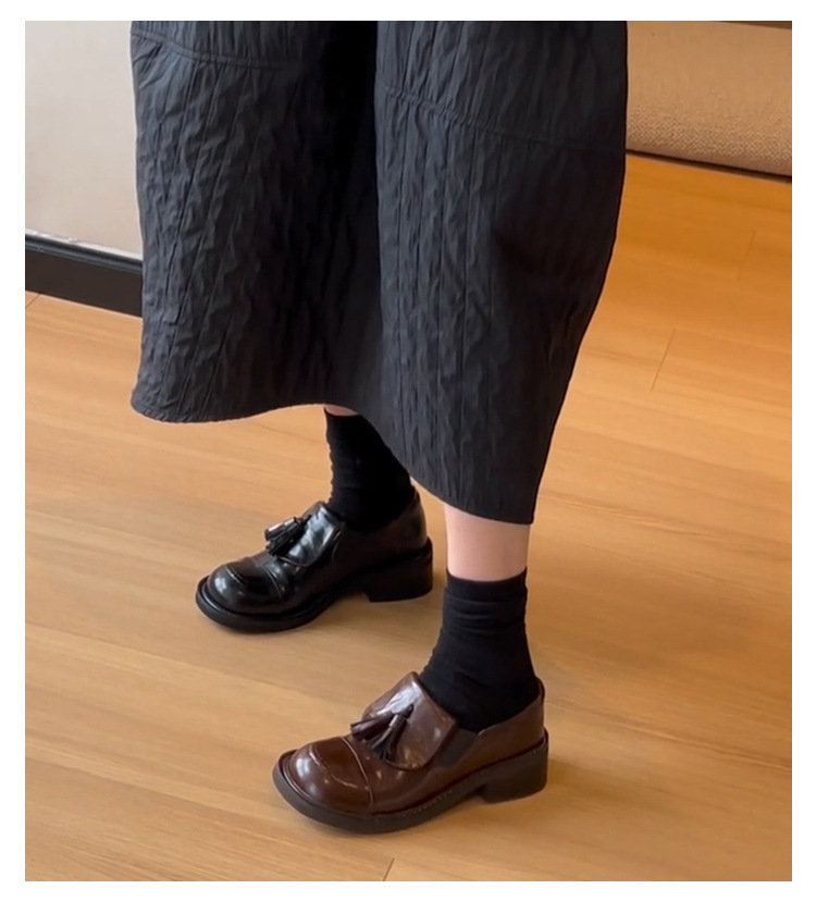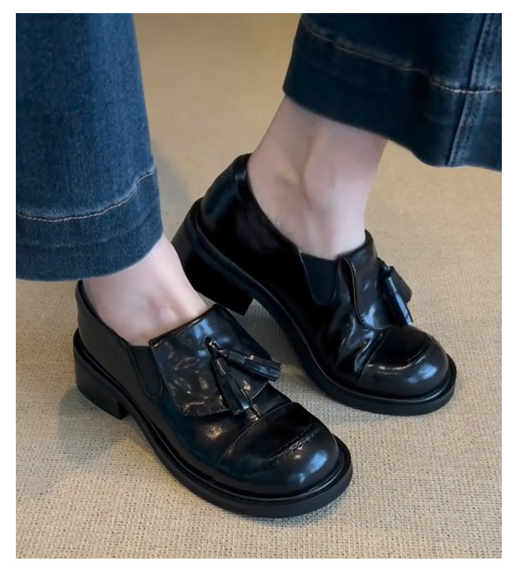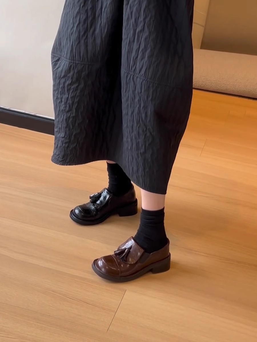 Cowhide 버전 ~ 레트로 라운드 헤드 술 로퍼 기모 싱글 레이어 신발 여성 올 매치 영국 바람 대학 두꺼운 밑창 작은 가죽 신발스토어 가기