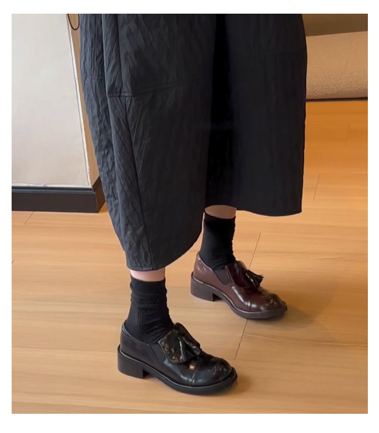 Cowhide 버전 ~ 레트로 라운드 헤드 술 로퍼 기모 싱글 레이어 신발 여성 올 매치 영국 바람 대학 두꺼운 밑창 작은 가죽 신발