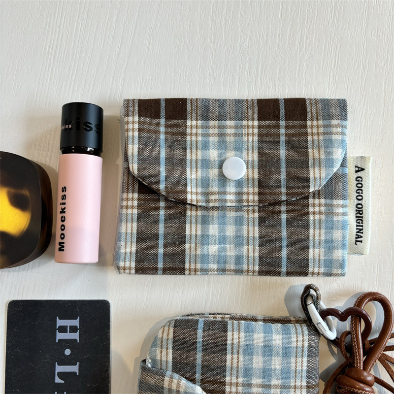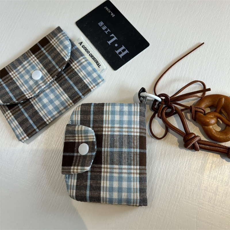 새로운 빈티지 격자 무늬 pendable 작은 신선한 카드 가방 다층 동전 지갑 캔버스 이어폰 가방 보관 가방