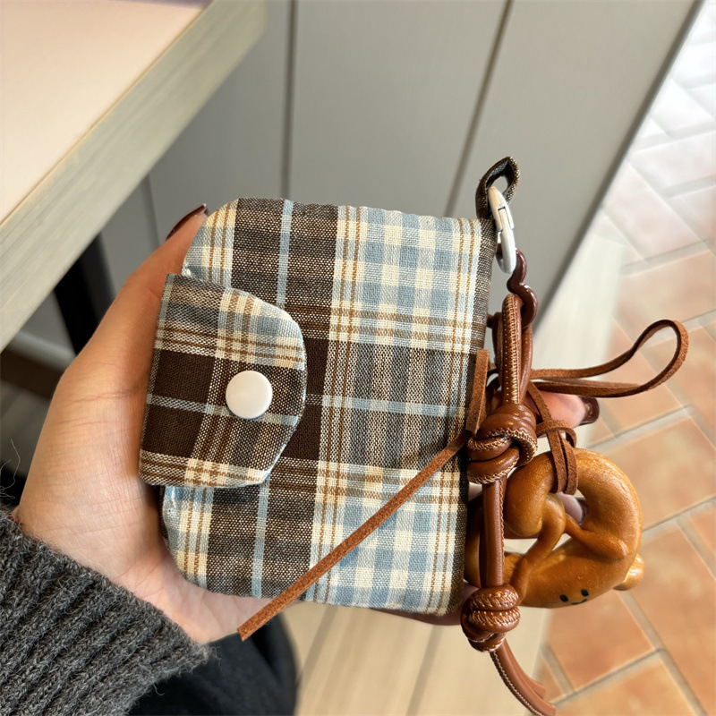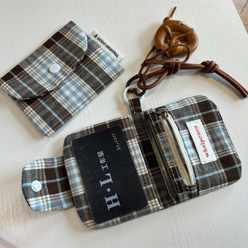 새로운 빈티지 격자 무늬 pendable 작은 신선한 카드 가방 다층 동전 지갑 캔버스 이어폰 가방 보관 가방스토어 가기