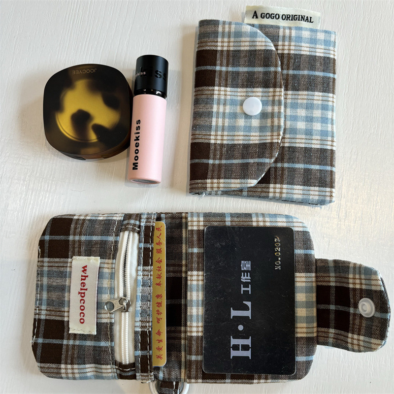 • 레트로 체크 무늬 더블 레이어 카드 홀더