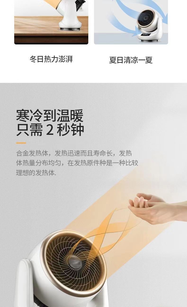 겨울철 가정용 소형 사무실 진자 헤드 원격 제어 데스크탑 히터 공기 냉각기에서 난방을위한 냉각 및 난방 이중 용도 팬