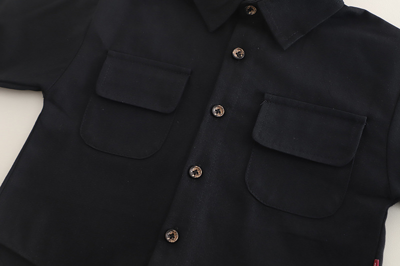 어린이 의류 소년의 단색 더블 포켓 캐주얼 아기 셔츠 한국 의류 데님 바지 봄 가을 3 종 세트스토어 가기