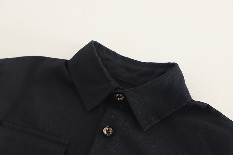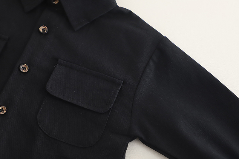 어린이 의류 소년의 단색 더블 포켓 캐주얼 아기 셔츠 한국 의류 데님 바지 봄 가을 3 종 세트