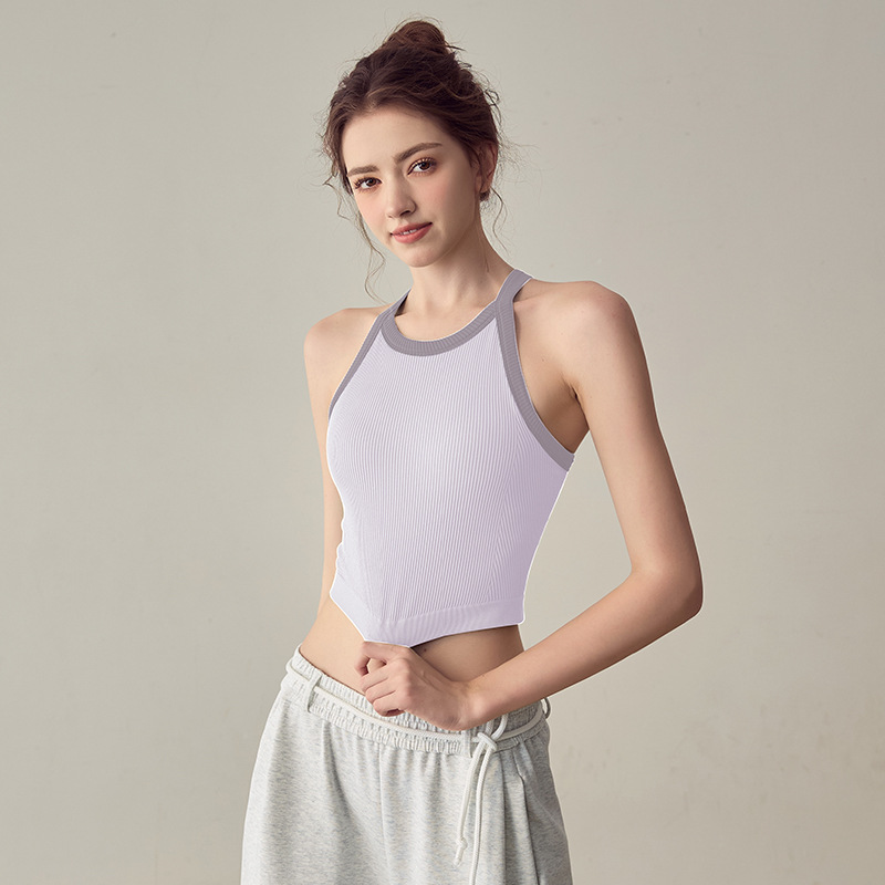 원피스 컬러 매칭 스포츠 속옷 여성 집결 칼라 요가 브래지어 외신을위한 고강도 훈련 피트니스 조끼