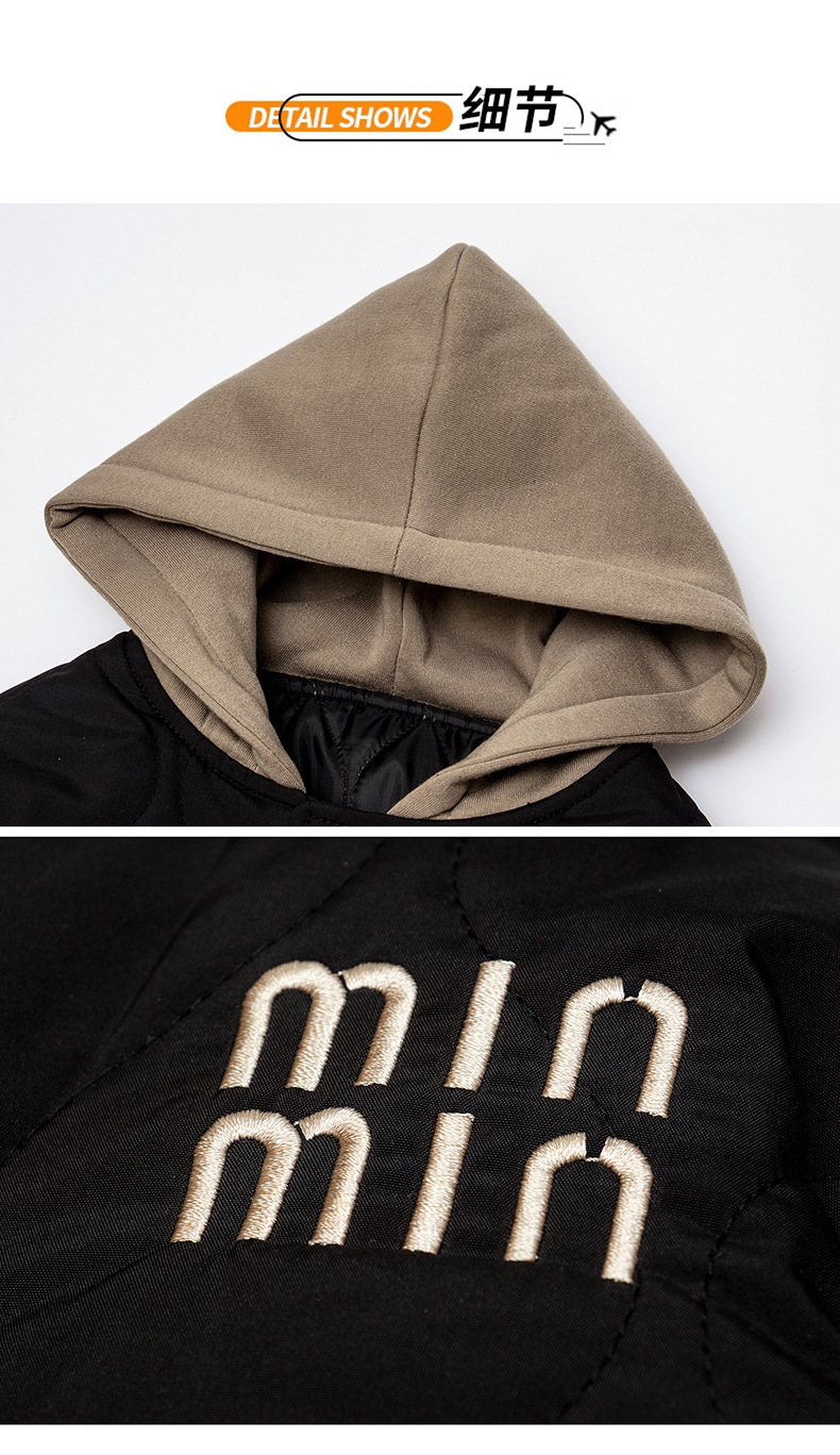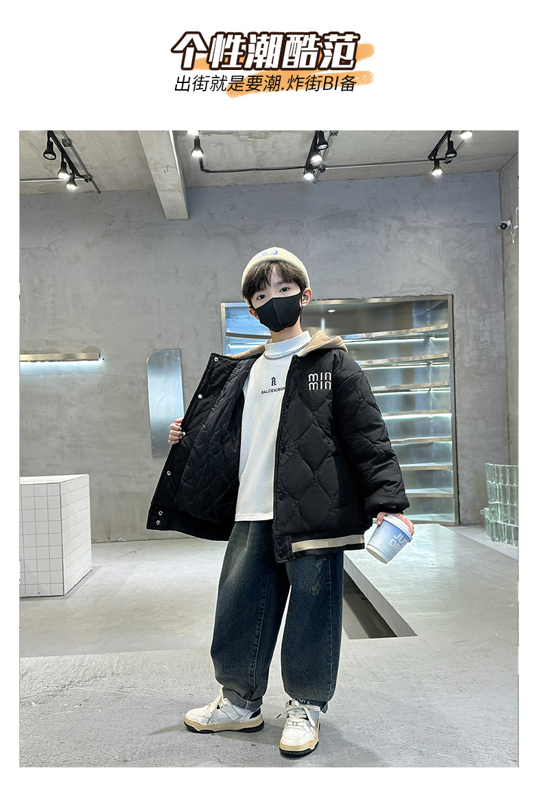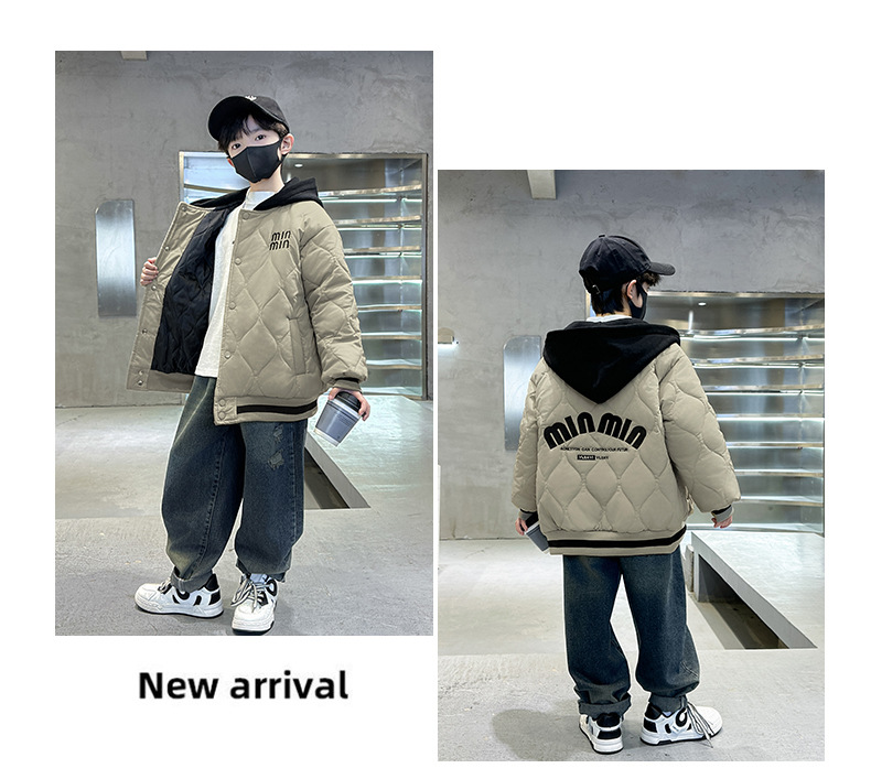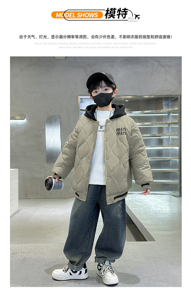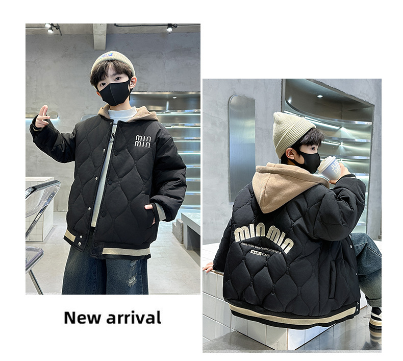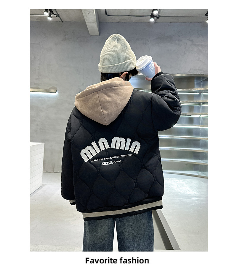 25 가을과 겨울 중 및 대형 어린이 편지 면 패딩 코트 두꺼운 버튼 카디건 탑 어린이 느슨한 캐주얼 후드 따뜻한 면화 패딩 코트
