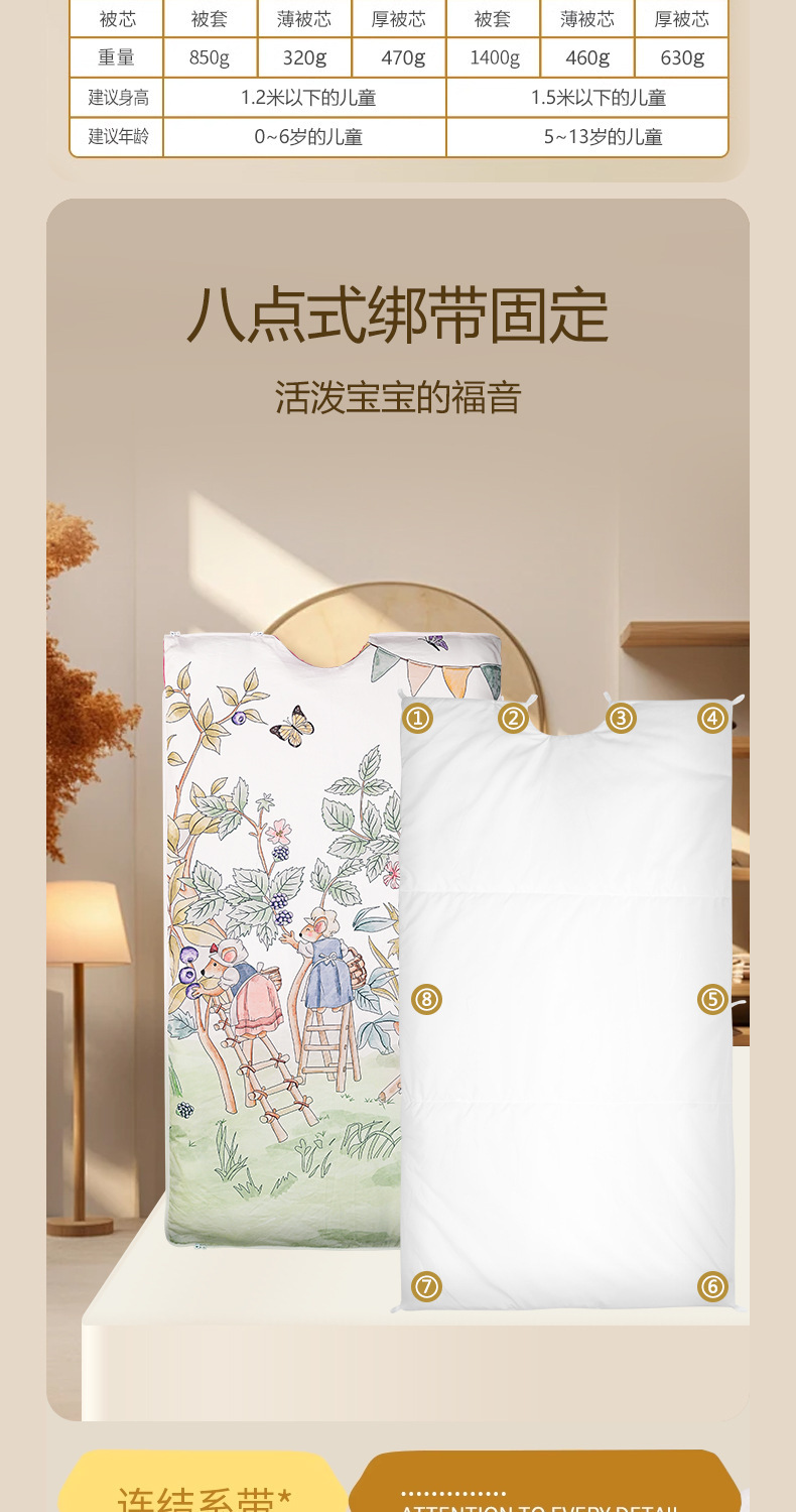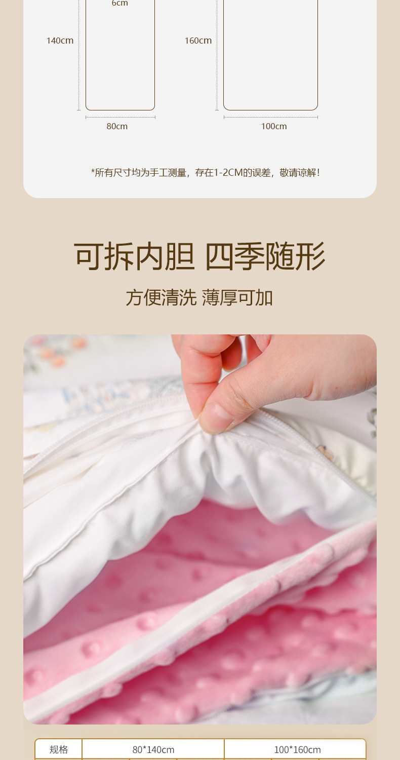 • M사이즈 80*140cm (얇은 이불심 + 두꺼운 이불심) + 베개