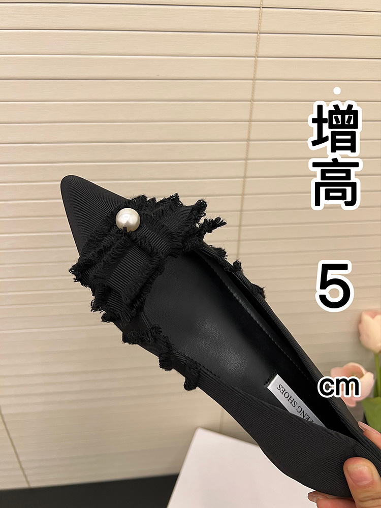 뾰족한 활 진주 평면 싱글 레이어 신발 여성의 2025 봄과 가을 새로운 통근 올매치 내부 높이 증가 여성 신발스토어 가기