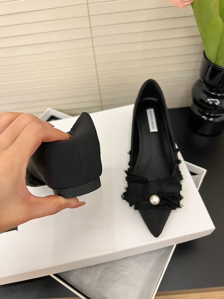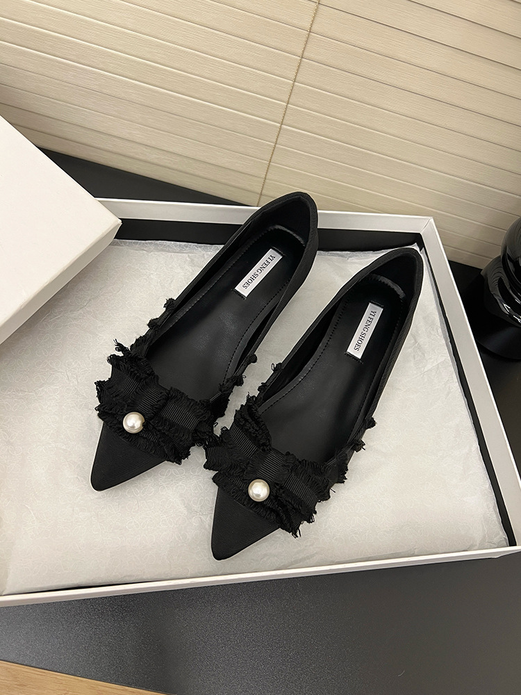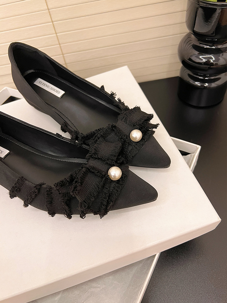 뾰족한 활 진주 평면 싱글 레이어 신발 여성의 2025 봄과 가을 새로운 통근 올매치 내부 높이 증가 여성 신발