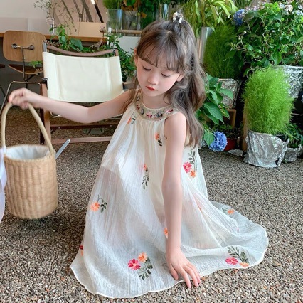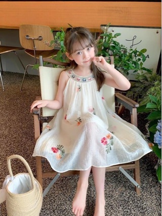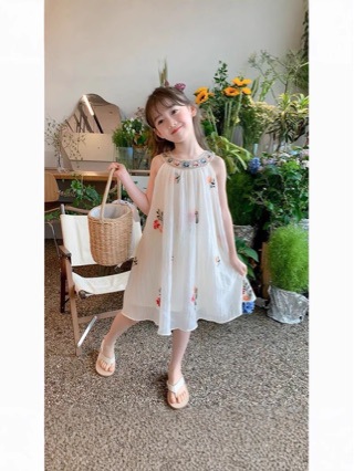 2024 여름 아기 소녀와 어린이 한국 스타일 공주 드레스 귀여운 조끼 거즈 드레스 공장 직접 판매스토어 가기