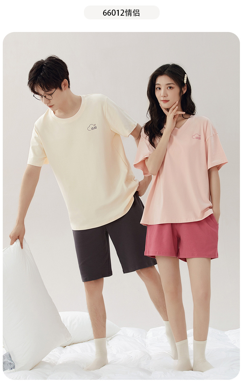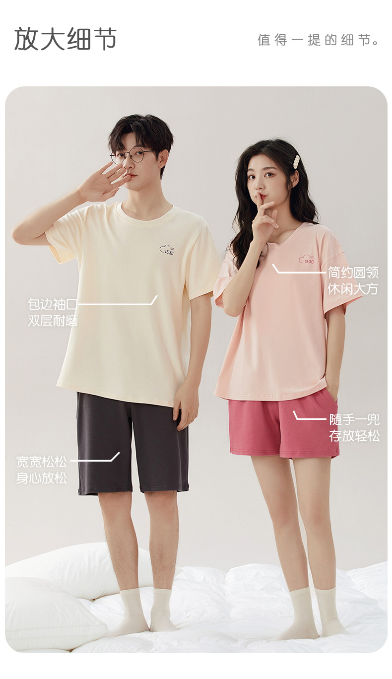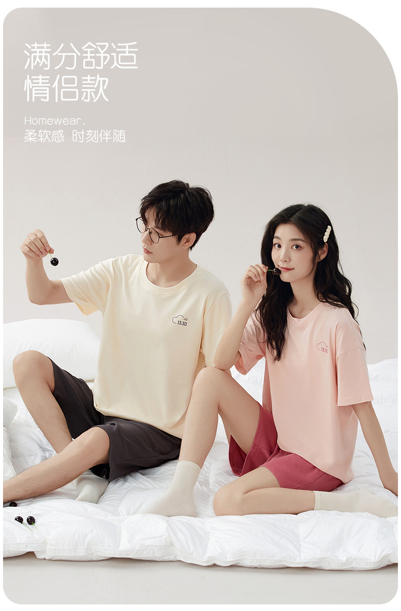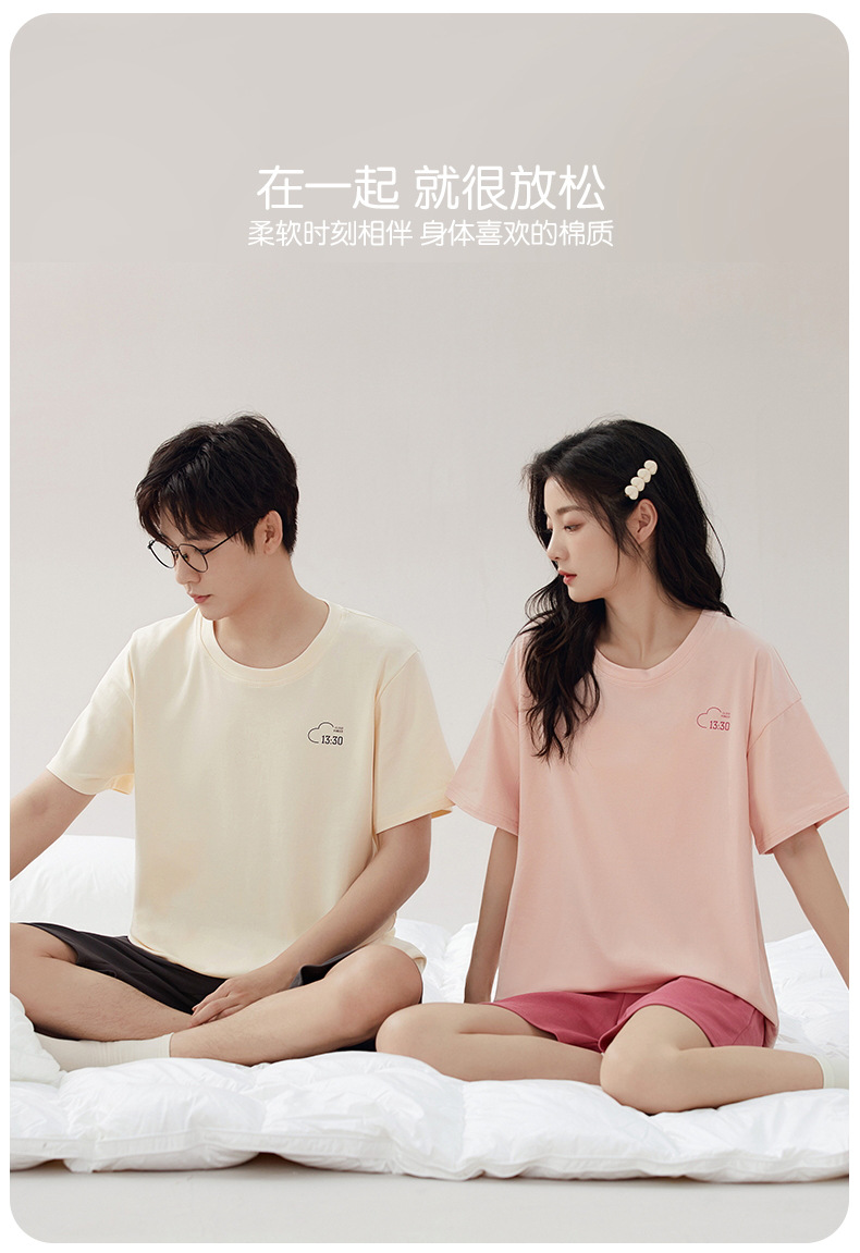 여름 클래스 A 항균 커플 잠옷 순수한면 반팔 남자와 여자의 새로운 얇은 세트 홈 옷 봄과 여름스토어 가기