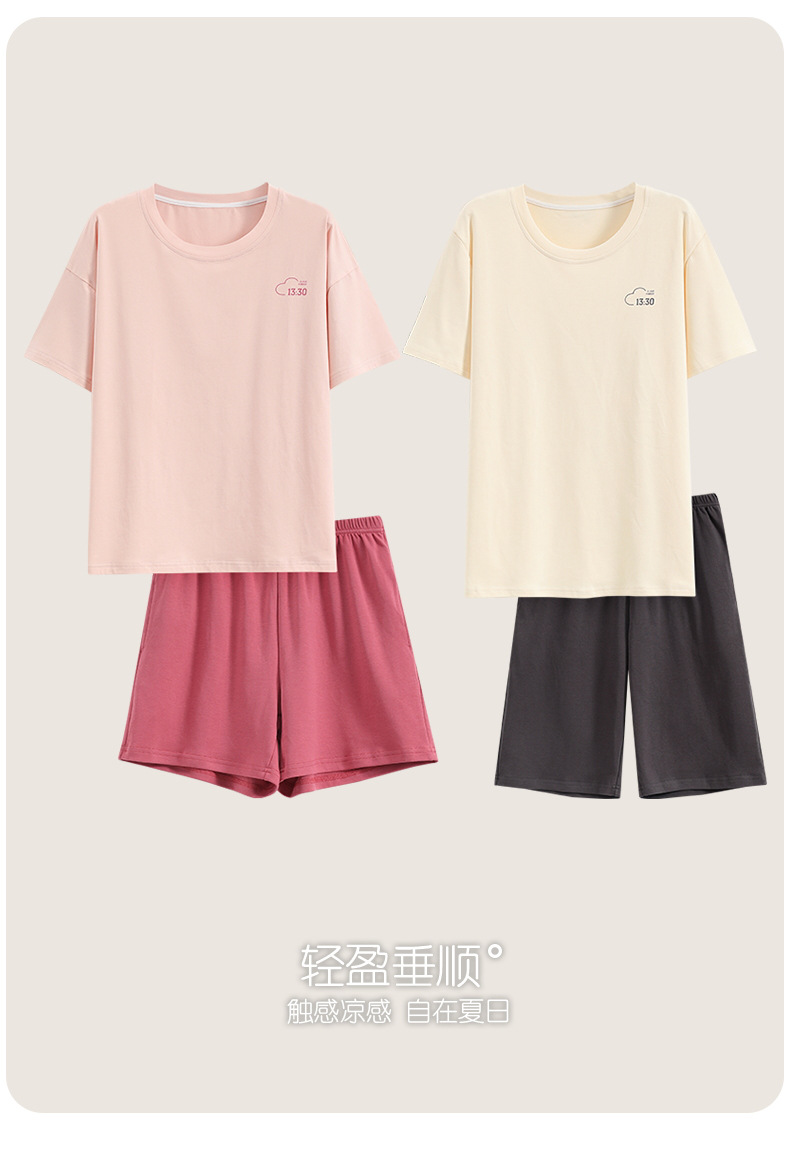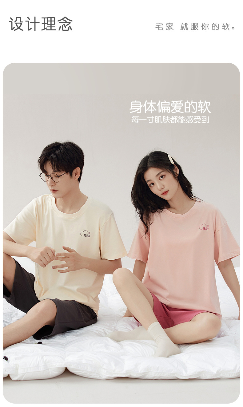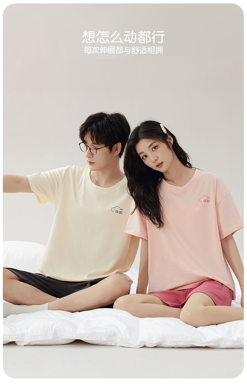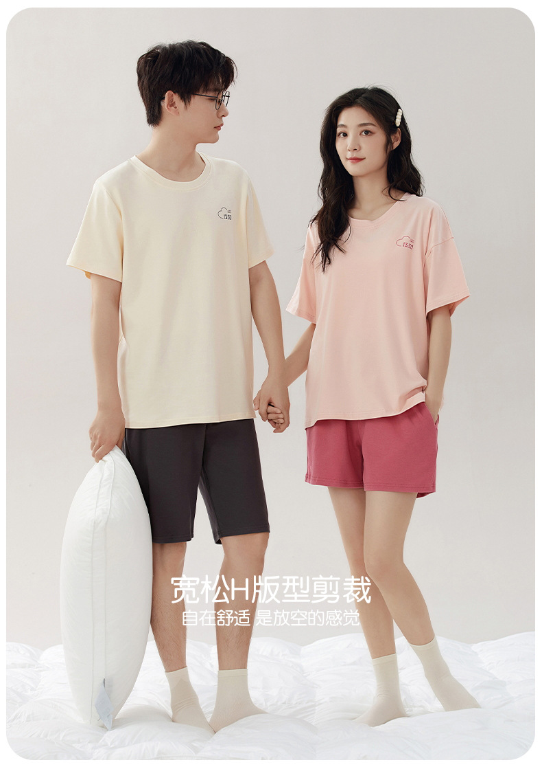 여름 클래스 A 항균 커플 잠옷 순수한면 반팔 남자와 여자의 새로운 얇은 세트 홈 옷 봄과 여름스토어 가기