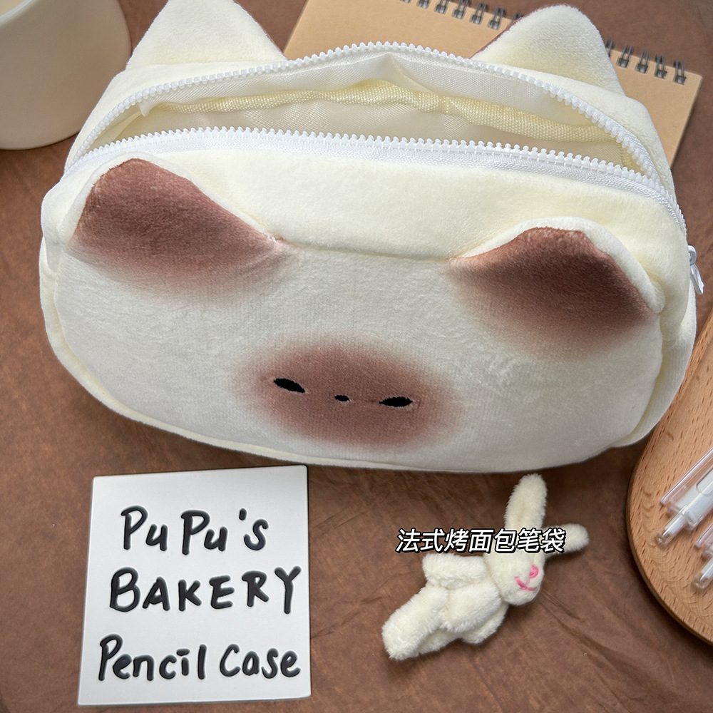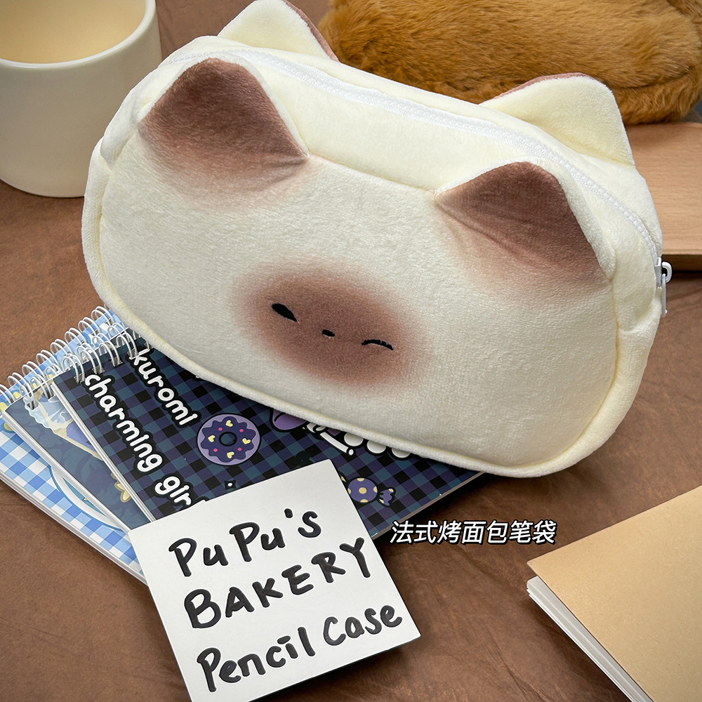 2025 귀여운 토스트 고양이 연필 가방 대용량 저장 가방 창조적 인 만화 중학교 학생 연필 문구 상자