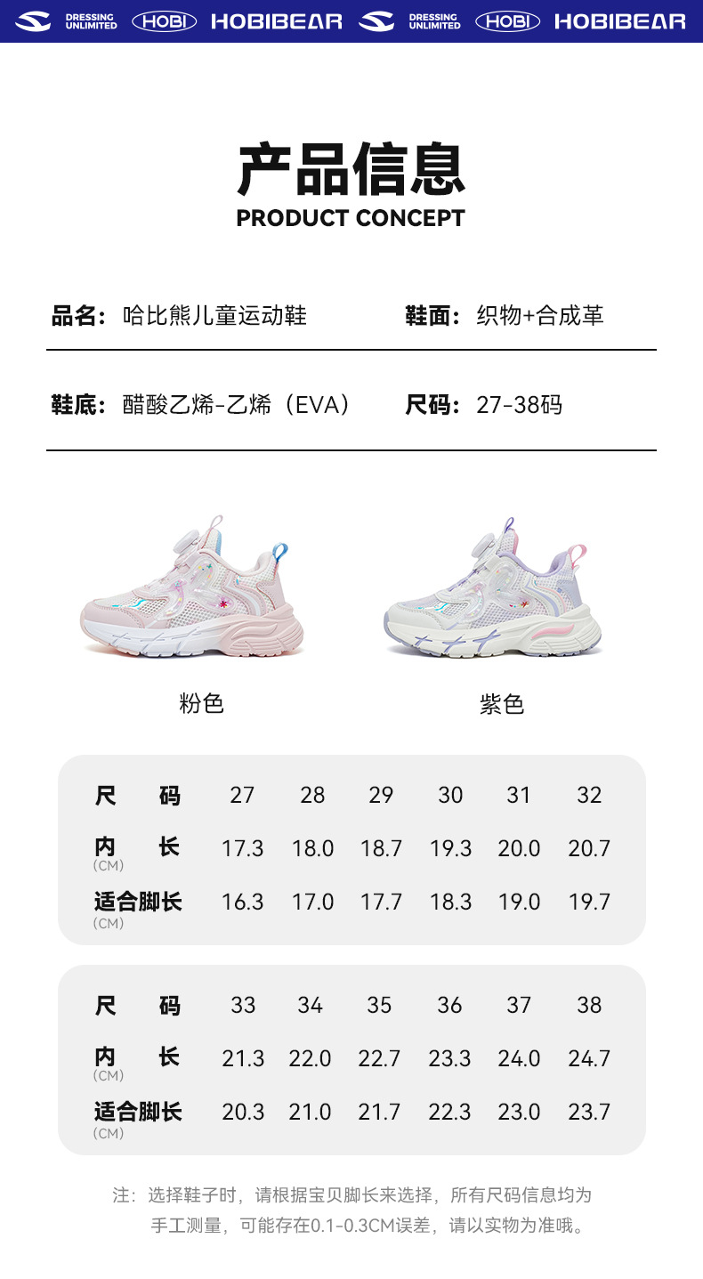 HOBIBEAR 봄과 가을 더블 넷 어린이 운동화 통기성 캠퍼스 소녀 아빠 신발 캐주얼 신발 공장 아울렛