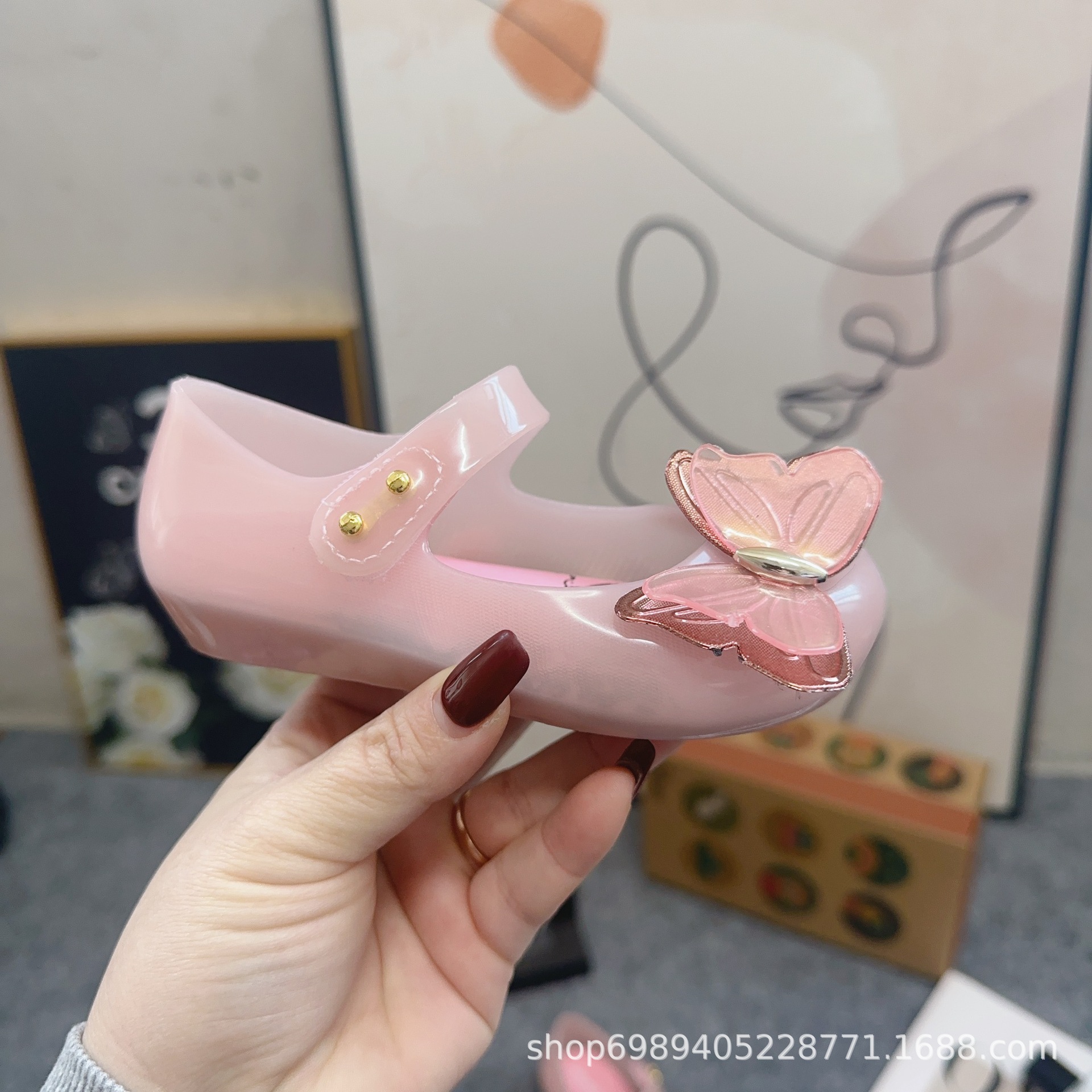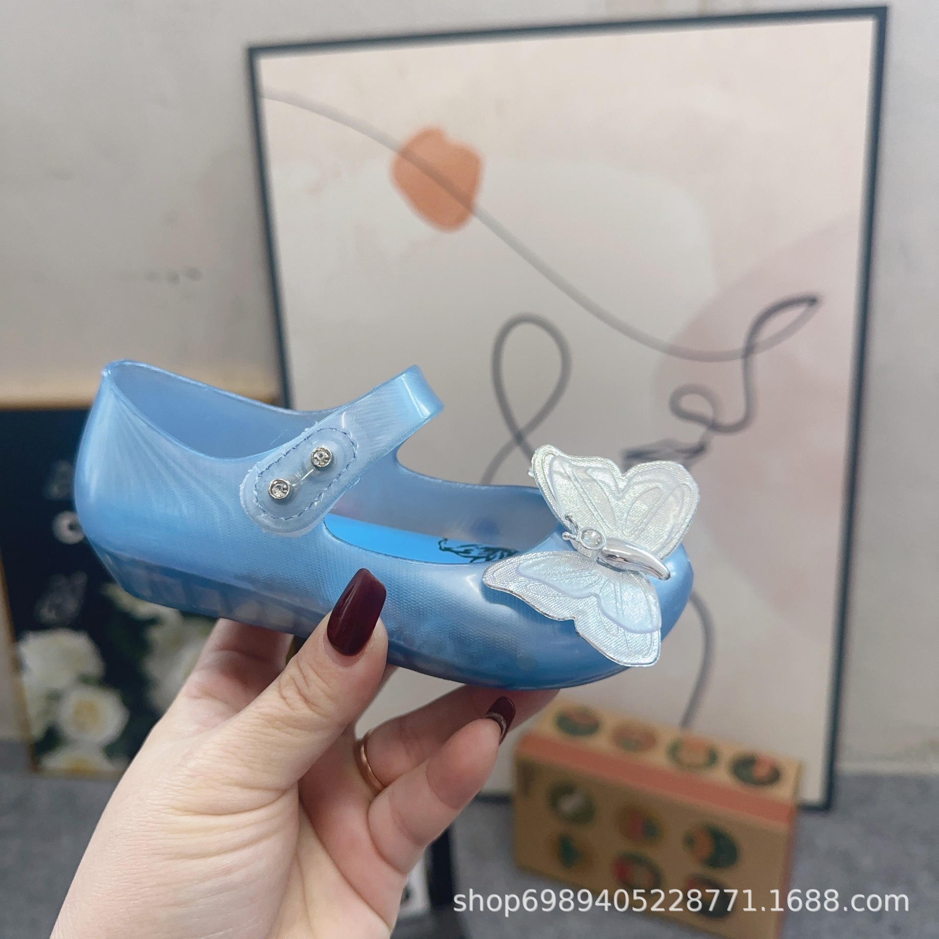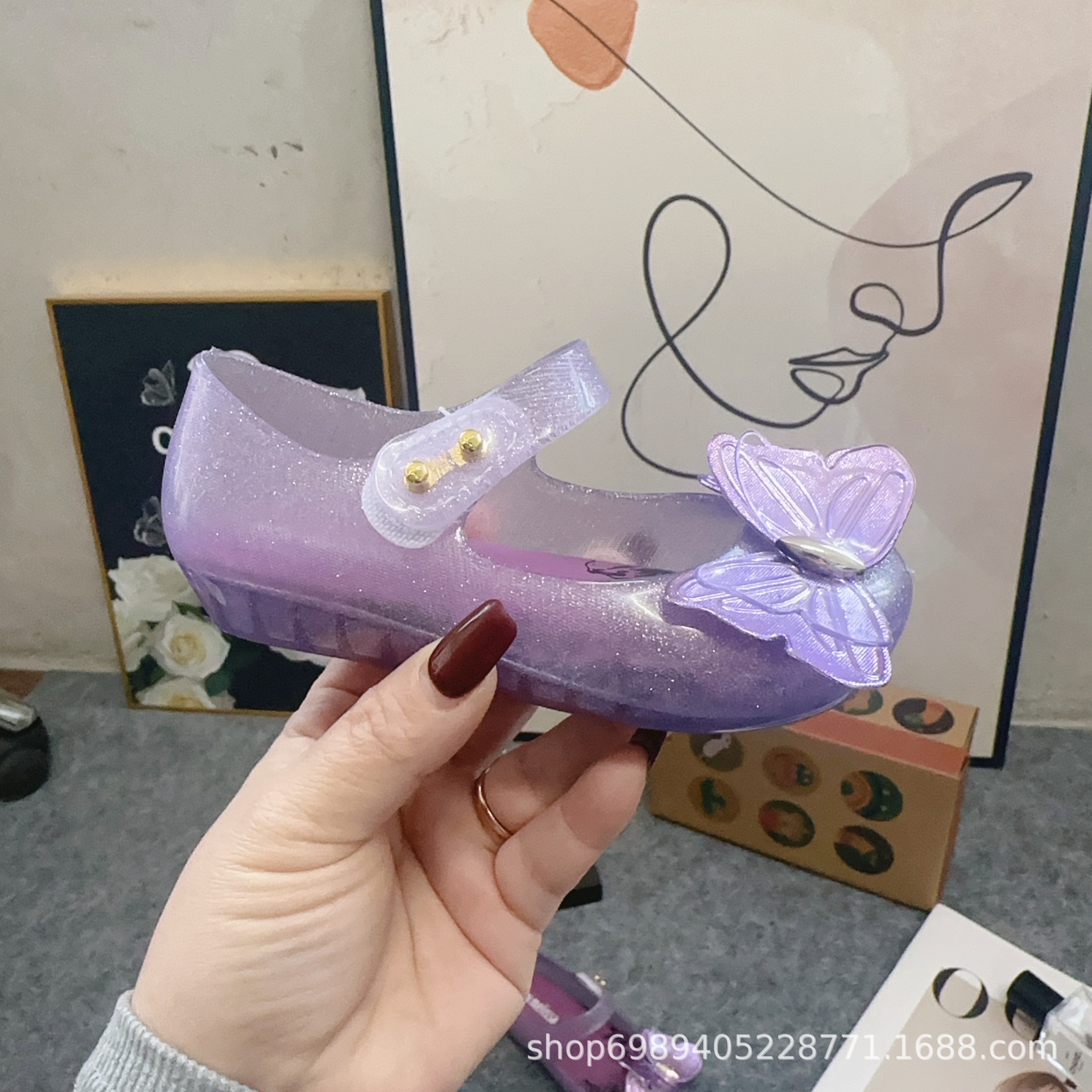 Mei Sha Metallic Sequin 3 차원 나비 소녀 해변 샌들스토어 가기
