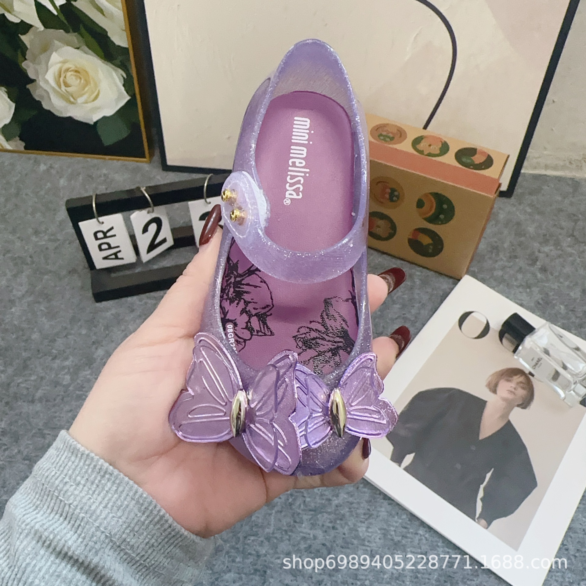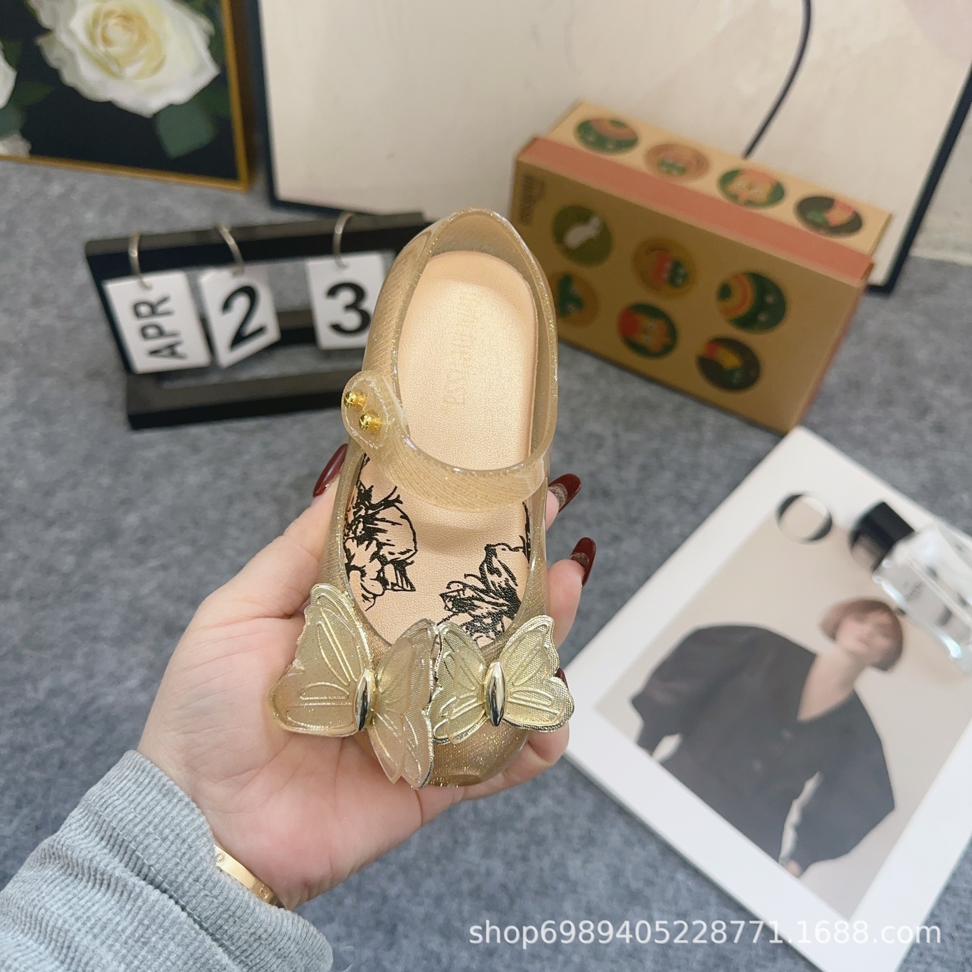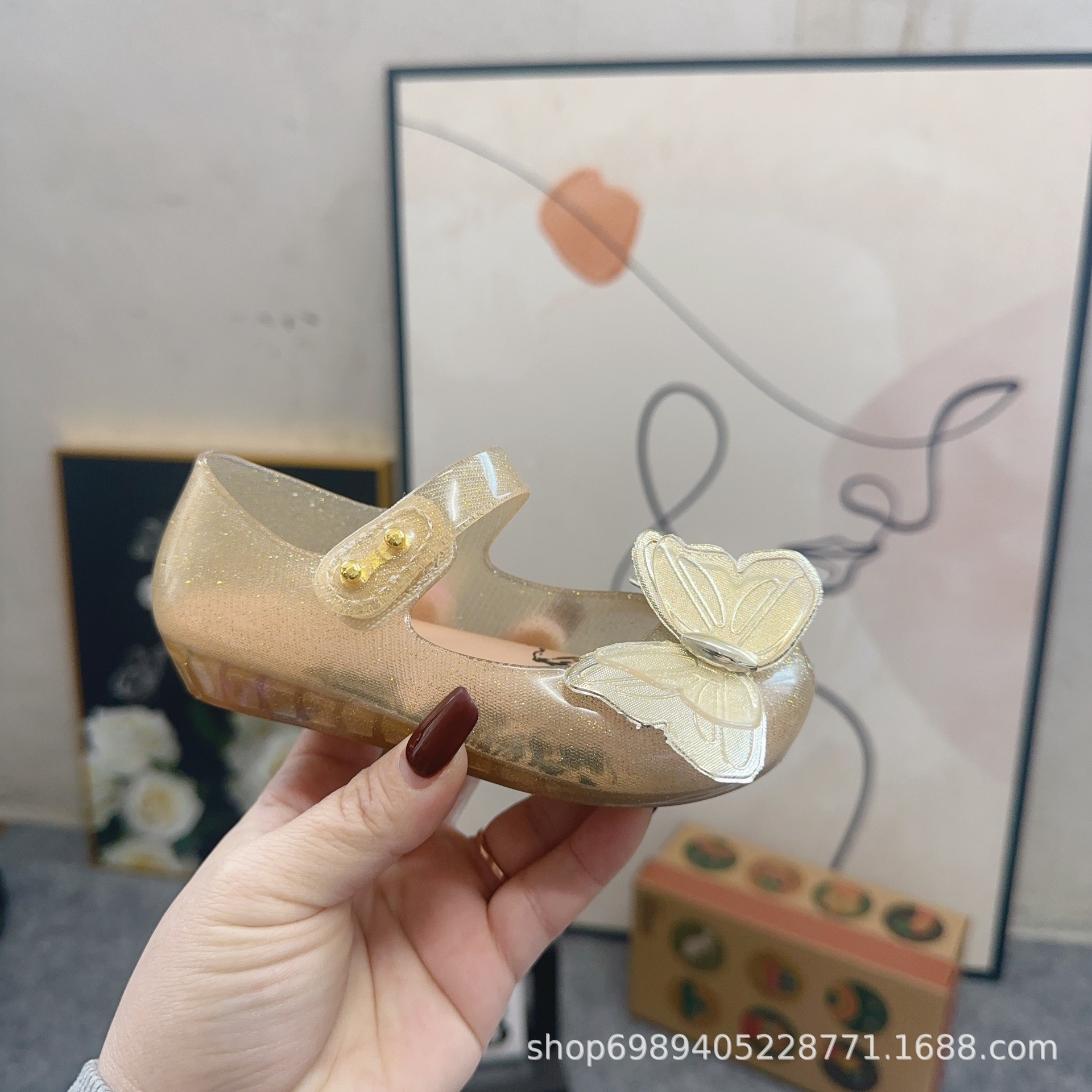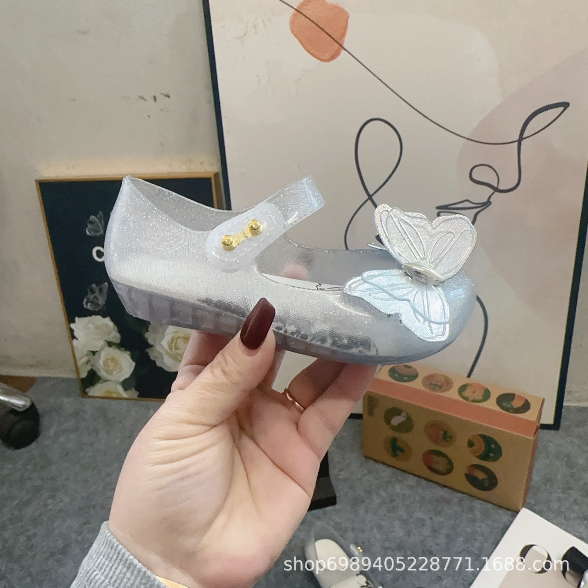 Mei Sha Metallic Sequin 3 차원 나비 소녀 해변 샌들