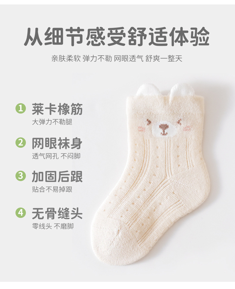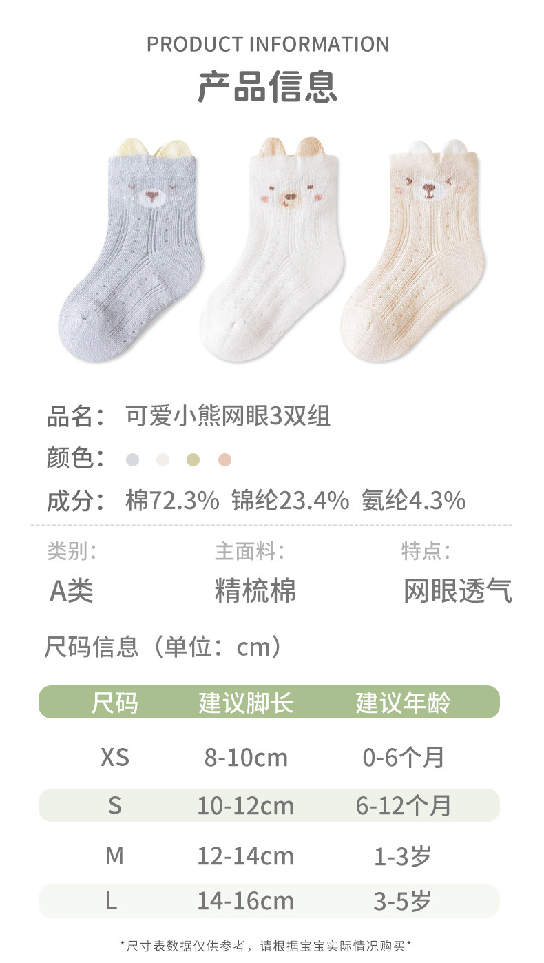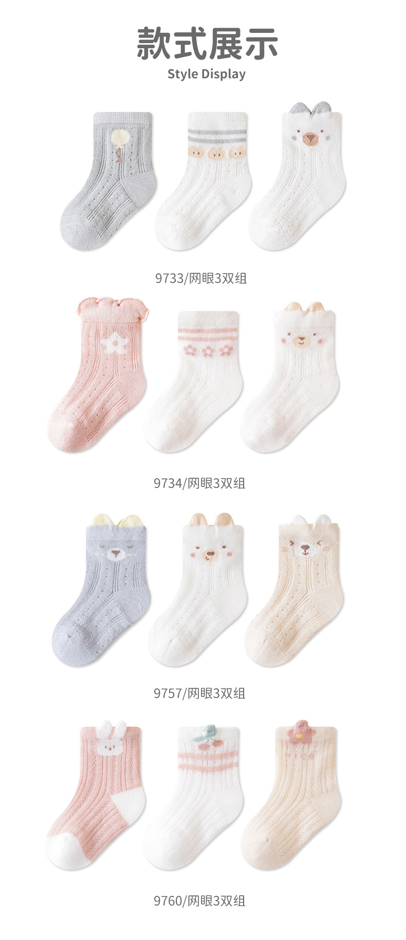 세 쌍의 어린이 튜브 양말 코튼 메쉬 통기성 아기 양말 만화 뼈없는 아기 양말 클래스 A스토어 가기