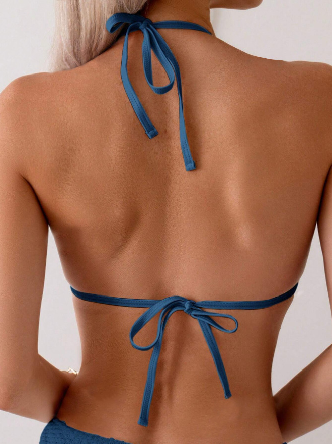유럽 및 미국 스타일 단색 분리형 수영복 여성 도매 단색 섹시한 삼각형 수영복 타이트한 백리스 비키니 수영복