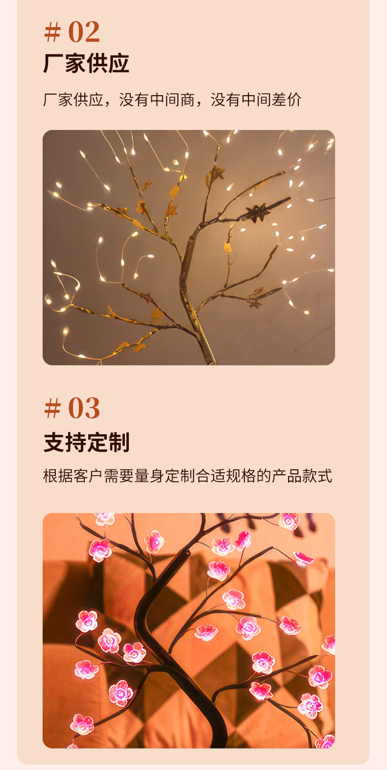 • 샴페인 뼈 꽃 나무 램프