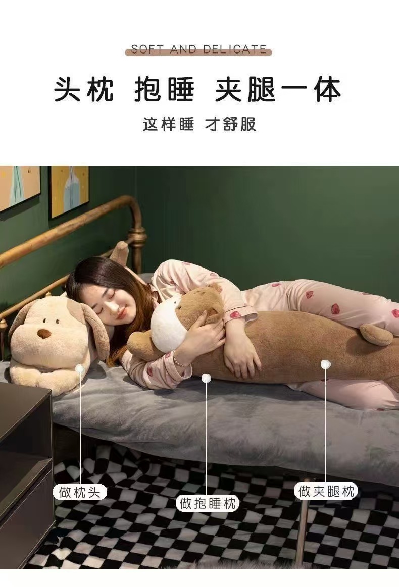 귀여운 긴 개 베개 잠자는 소녀 측면 잠자는 다리 클램프 인형 개 인형 침대 봉제 장난감 선물스토어 가기