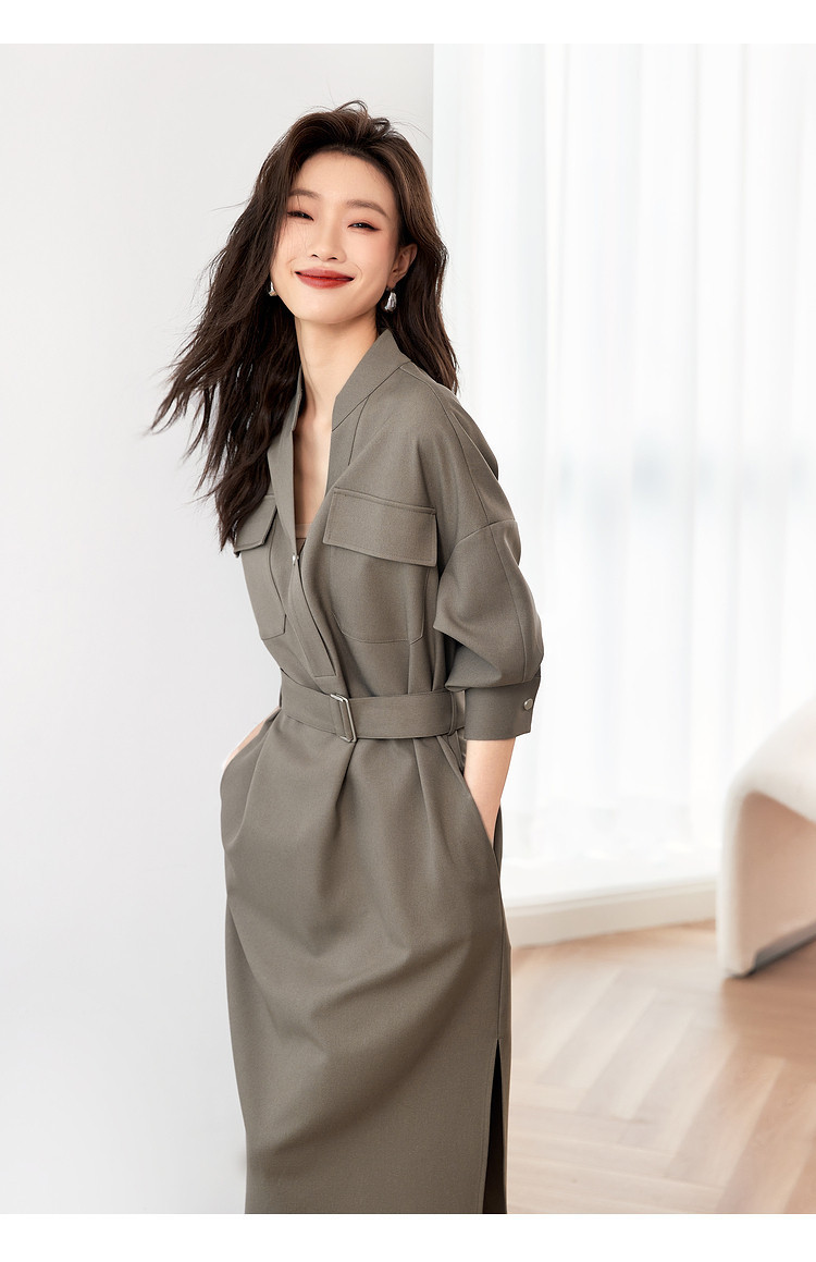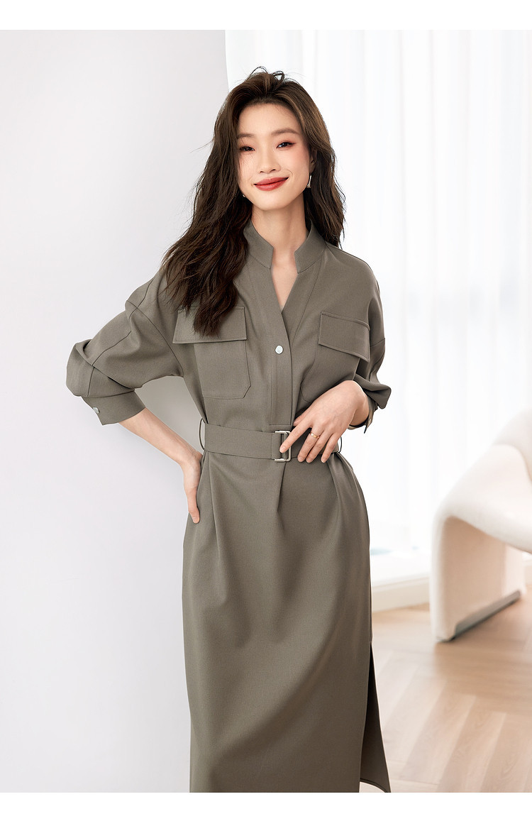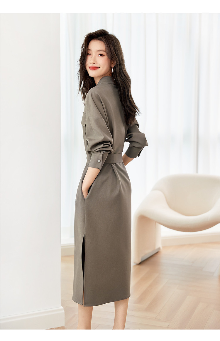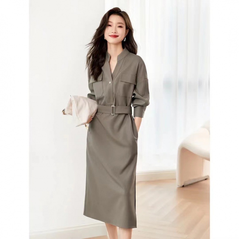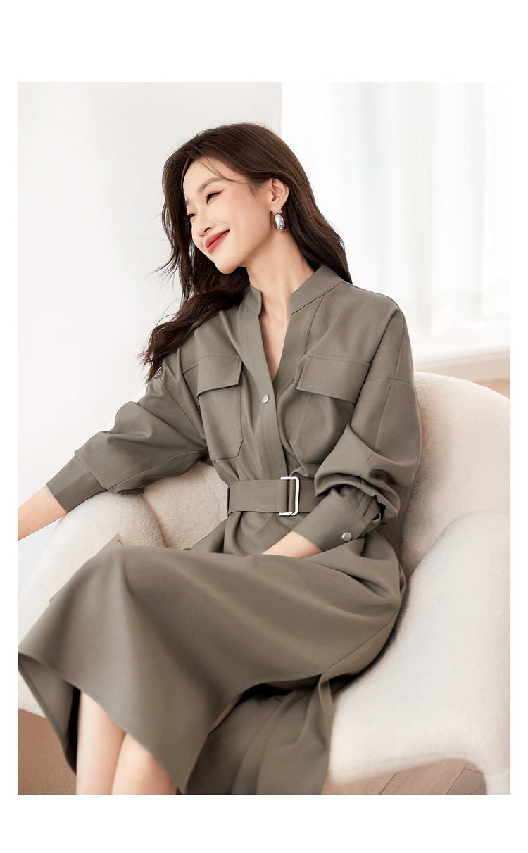 [프랑스 기질 통근 원피스] 2023 가을 스타일 V-목 꽉 허리 슬림 셔츠 여성 원피스스토어 가기