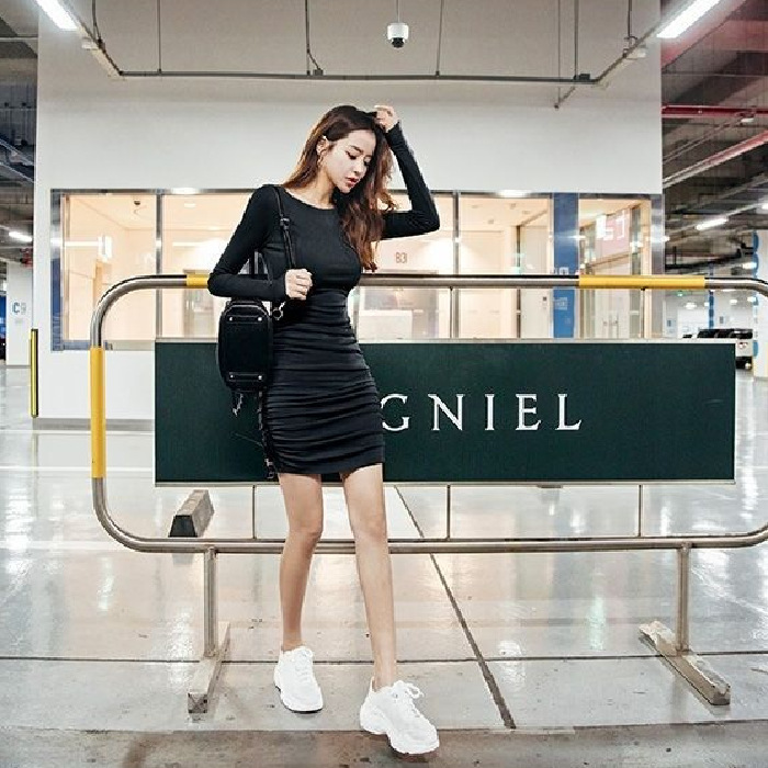 순수한 욕망 섹시한 슬림 핏 원피스 여성 가을/겨울 프랑스 스타일 슬림핏 베이스 스커트 아메리칸 스타일 스파이스 소녀 리틀 블랙 스커트스토어 가기