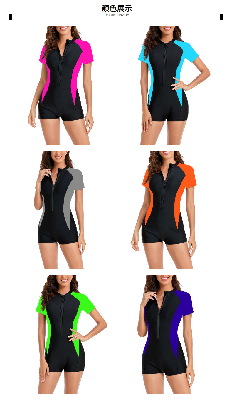 새로운 유럽과 미국의 대외 무역 원피스 짧은 소매 지퍼 서핑 세트 여성 수영복 온천 수영복 AliExpress 아마존 수영복스토어 가기