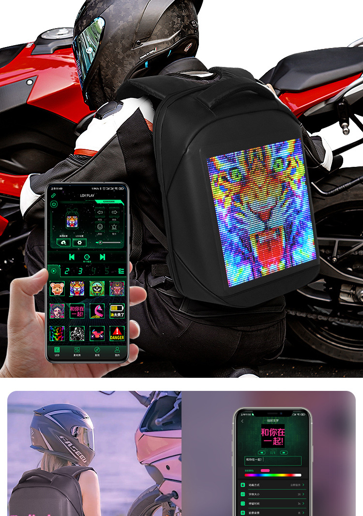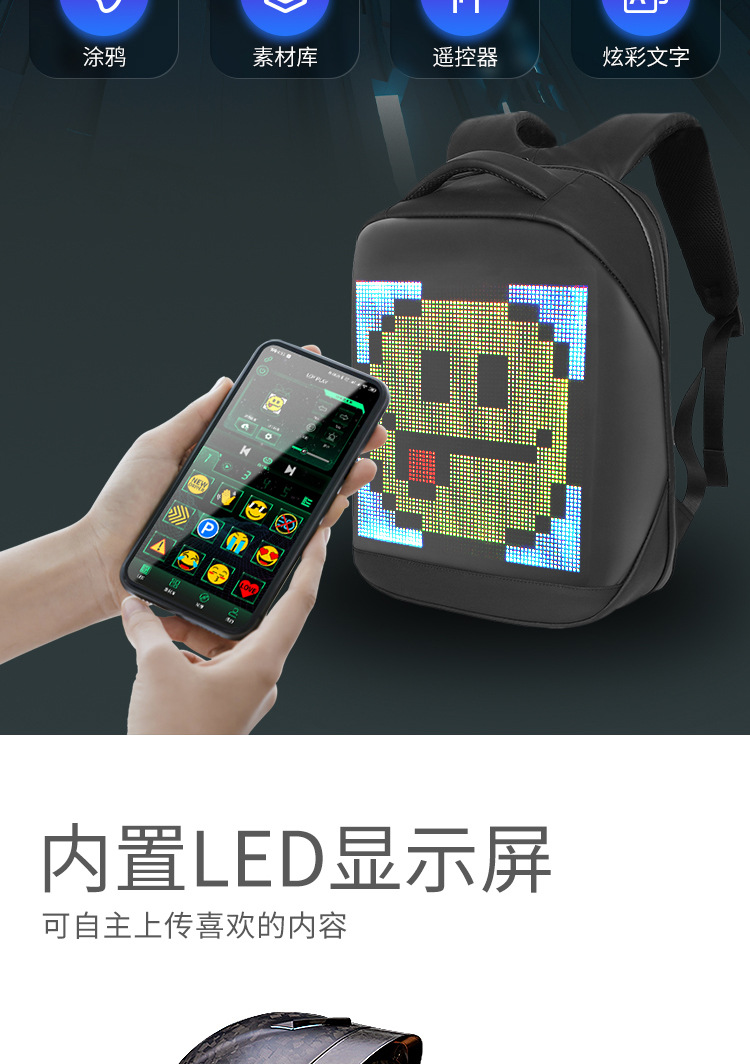 로이 크리에이티브 LED 백팩 아웃도어 더블 숄더백 남녀 공용 캐주얼 출퇴근 가방 LED 광고 발광 가방 경량