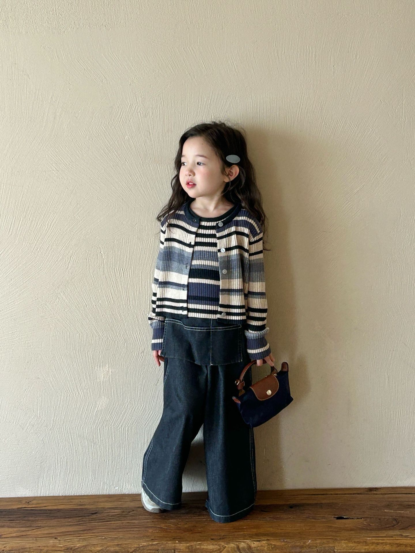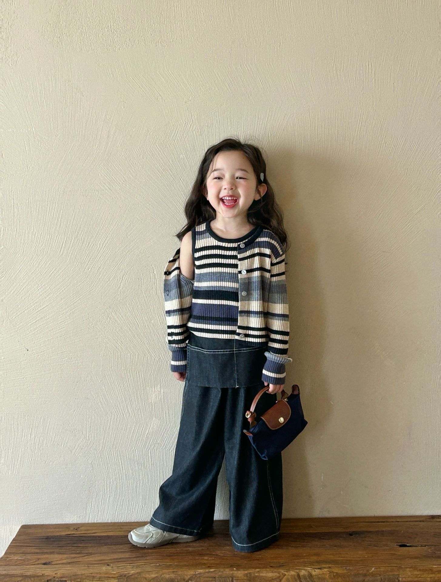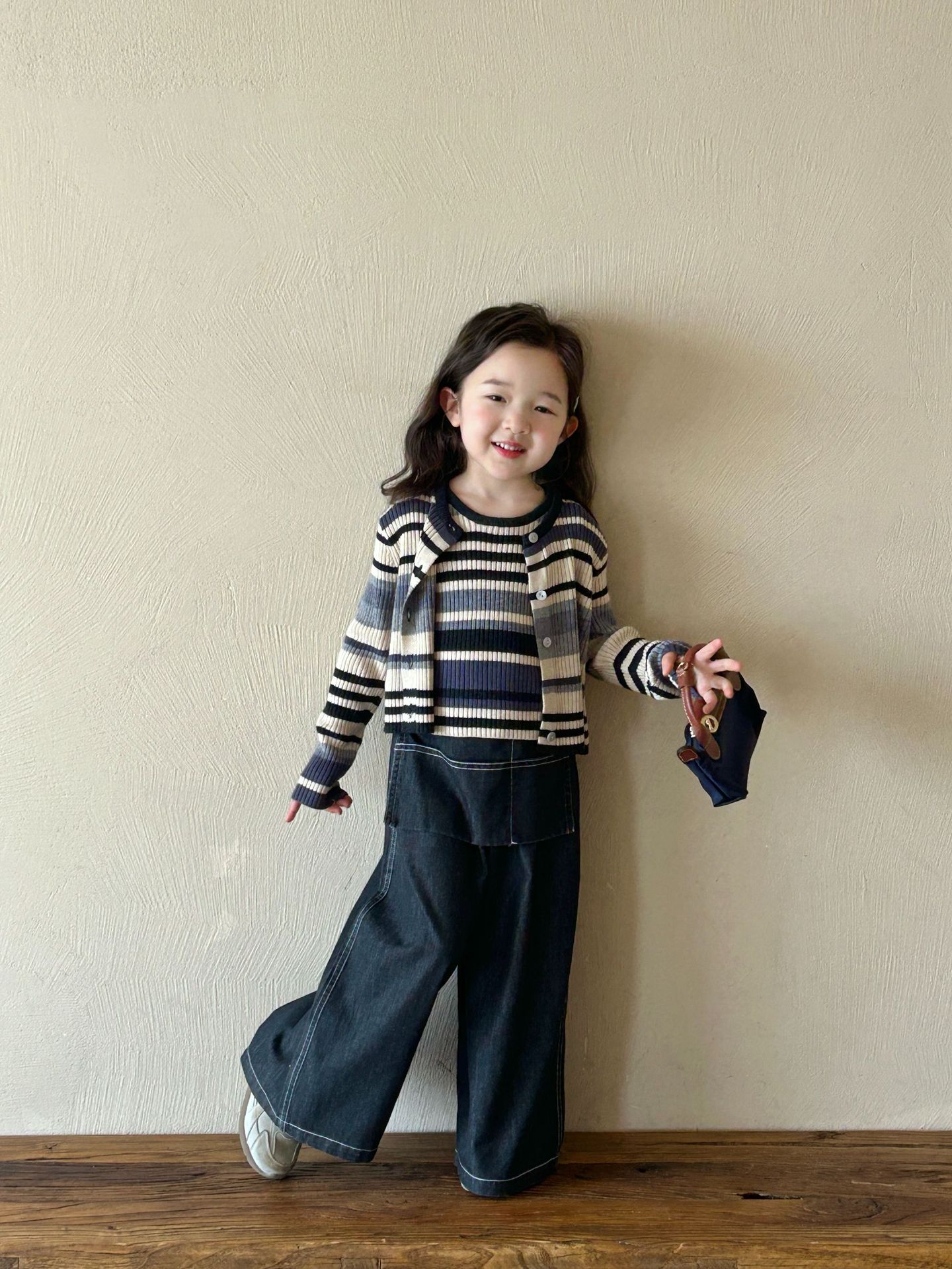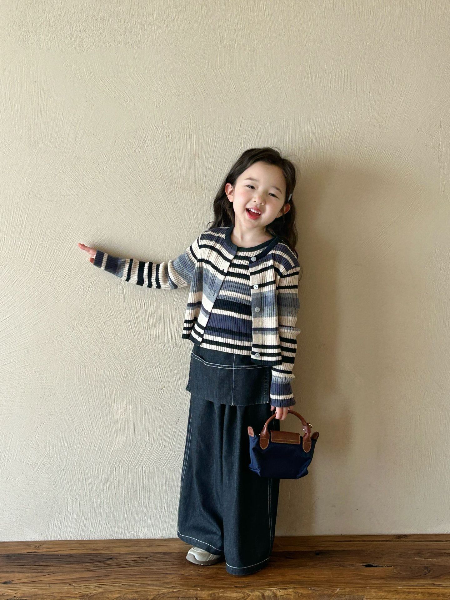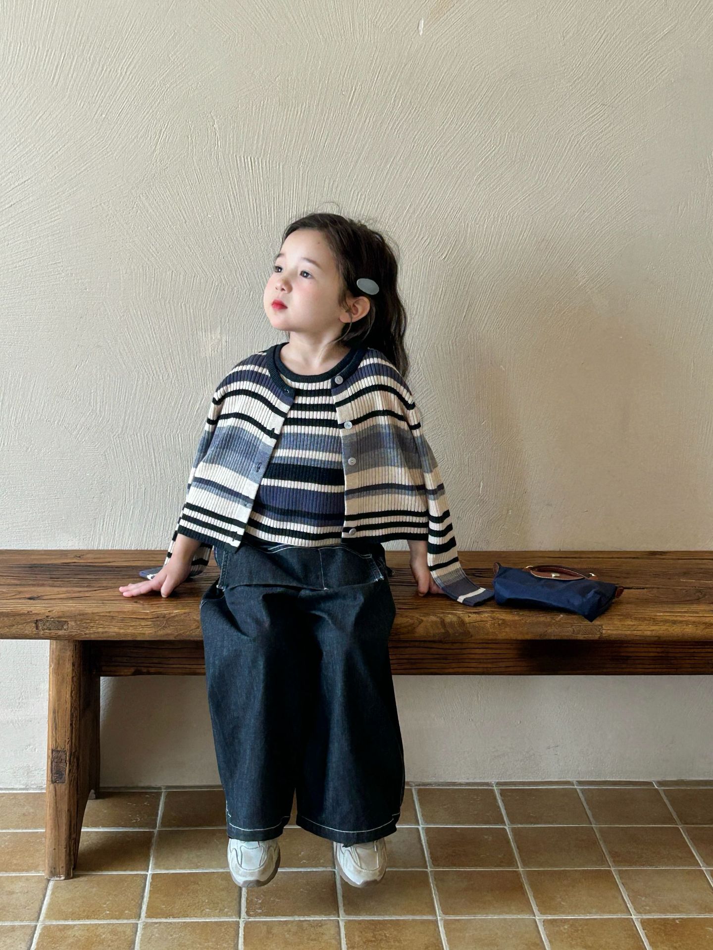 봄 2025 새로운 아동복 한국 아동복 소녀 줄무늬 니트 모직 카디건 조끼 스웨터 세트스토어 가기