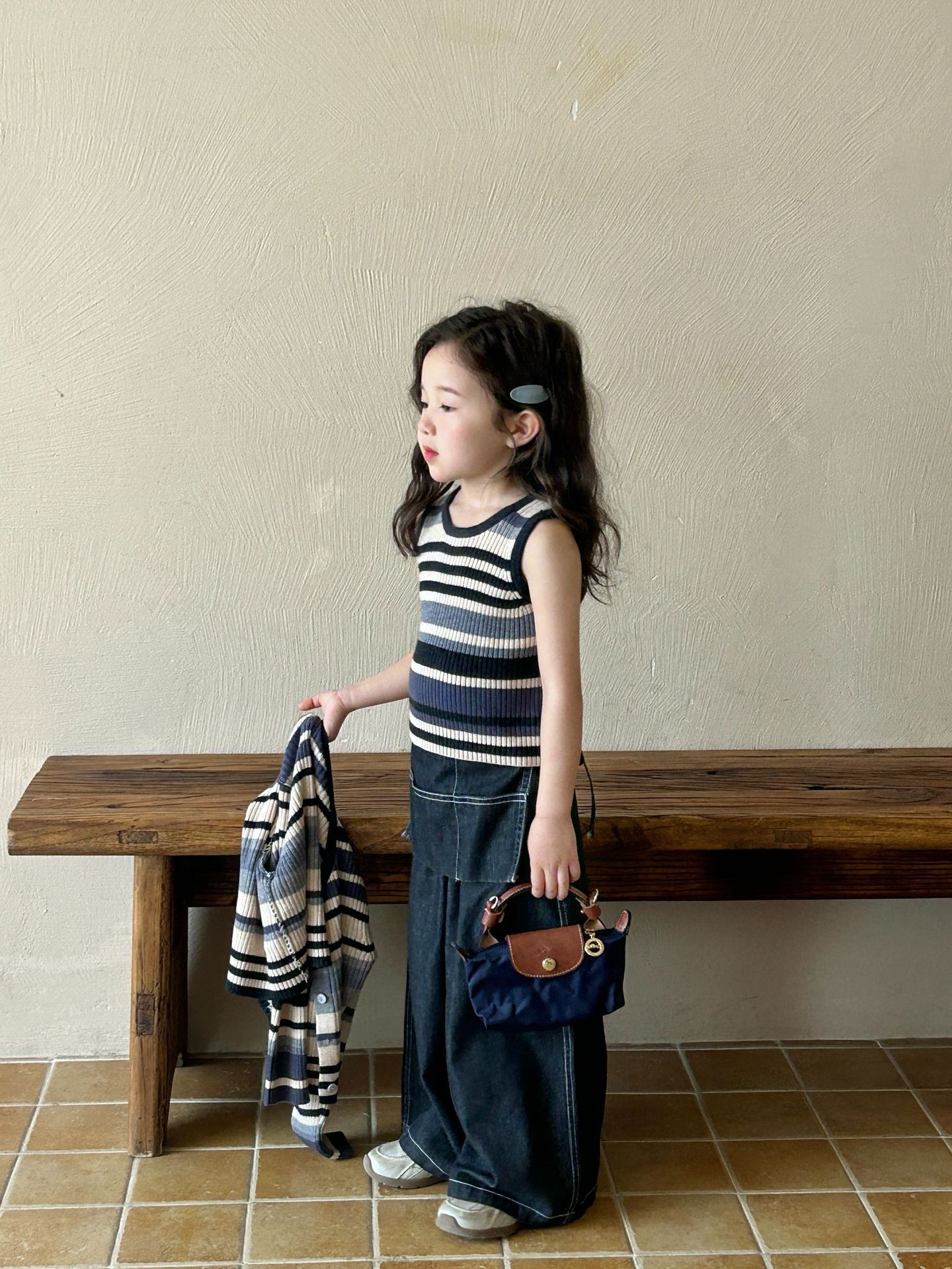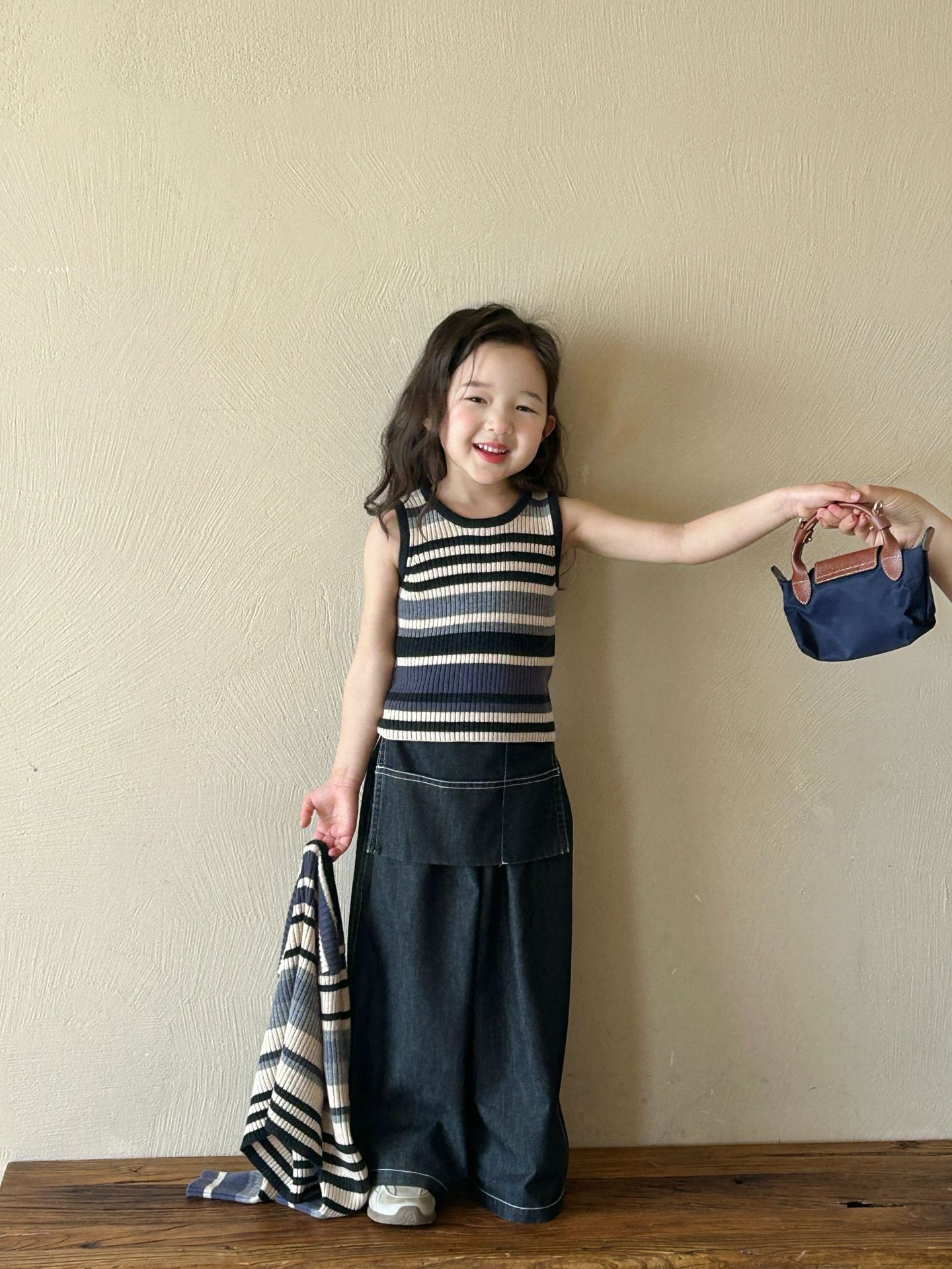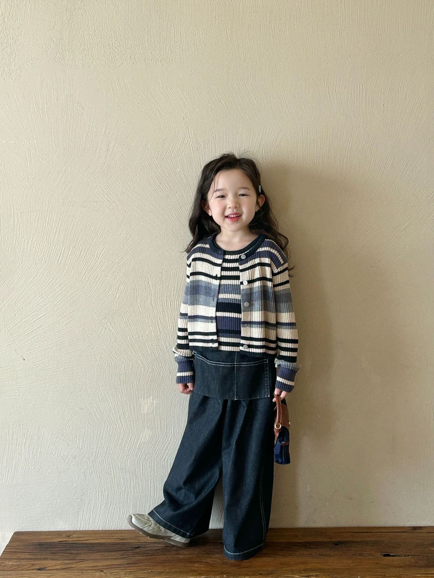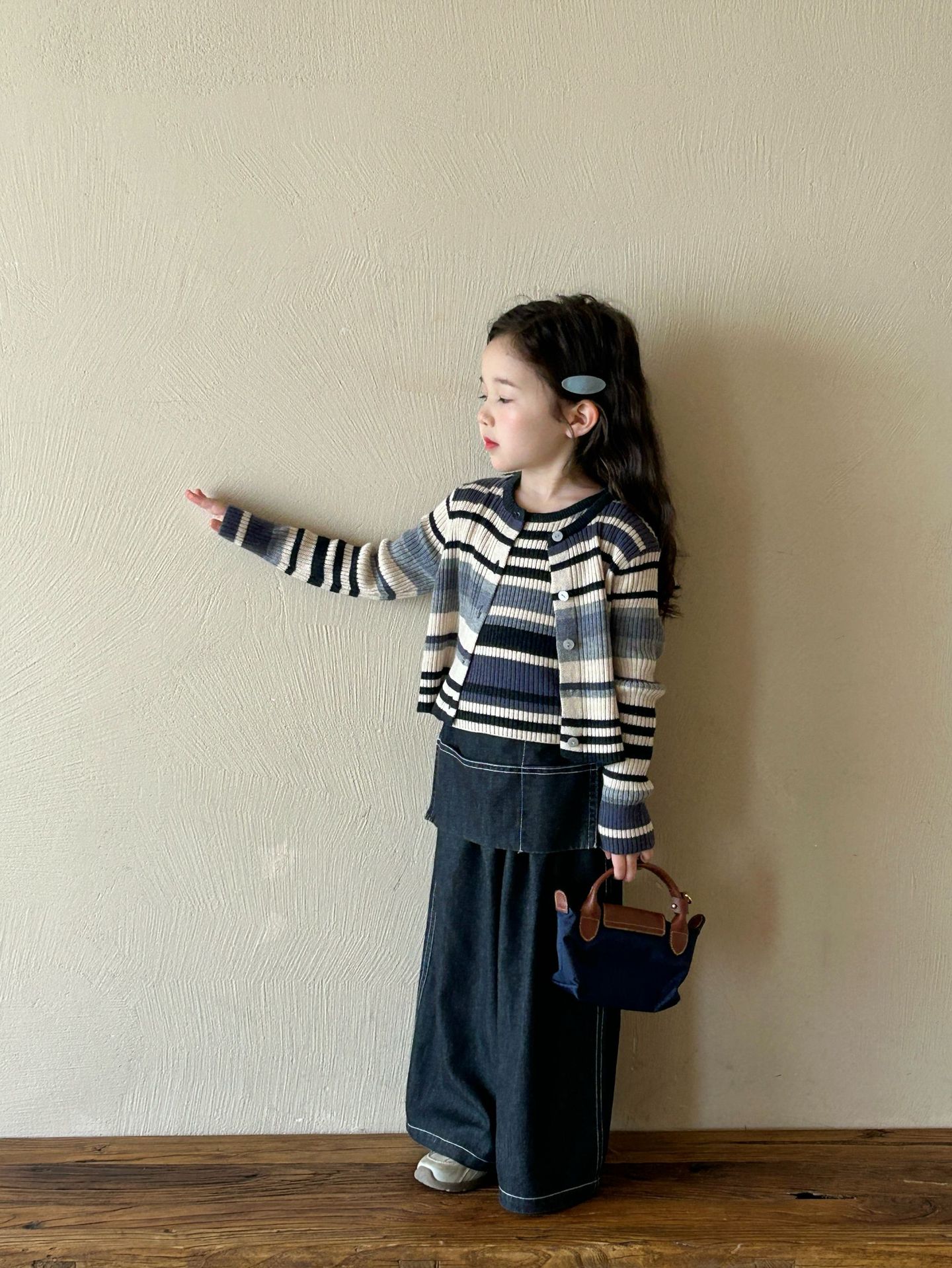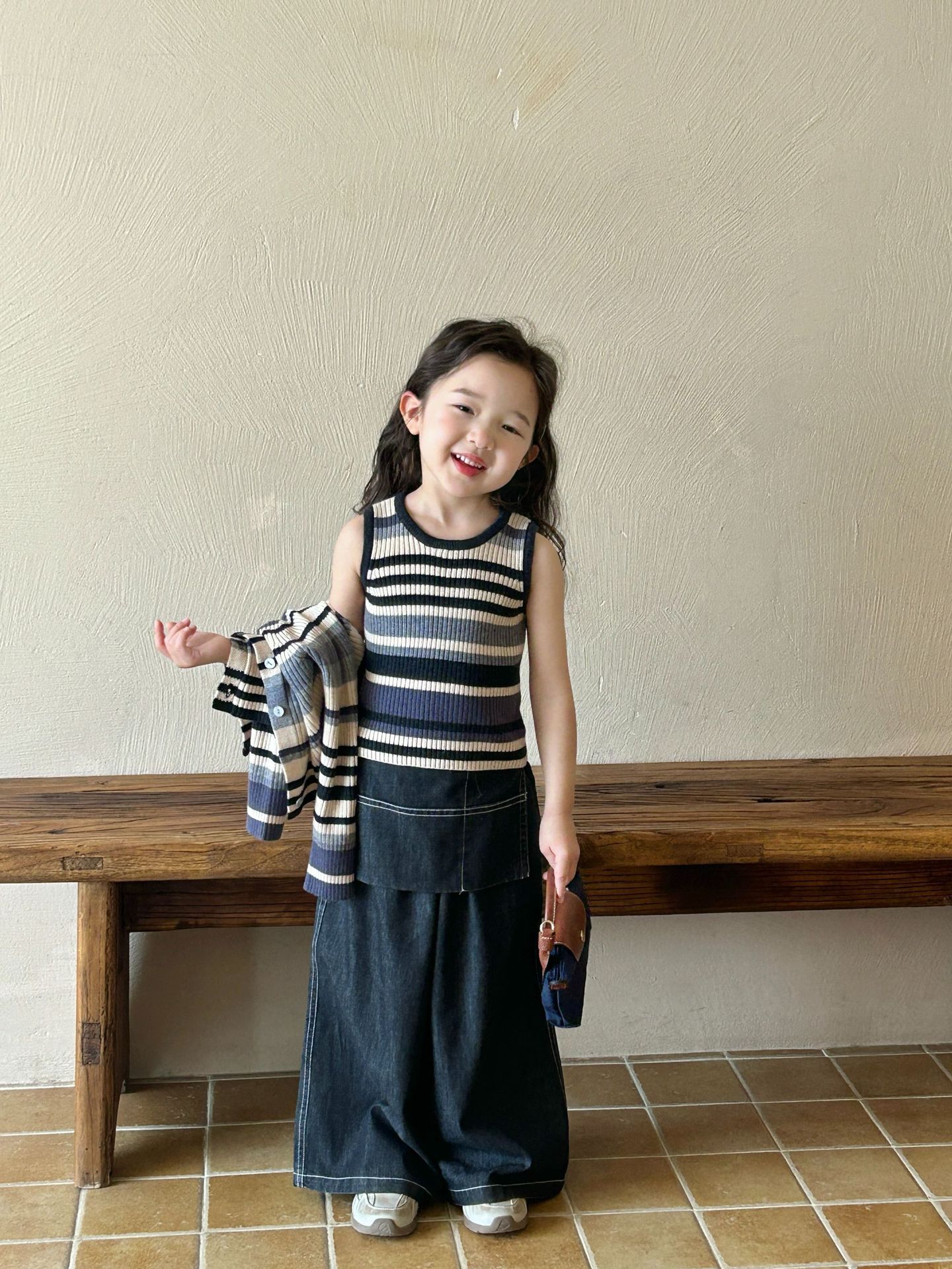 봄 2025 새로운 아동복 한국 아동복 소녀 줄무늬 니트 모직 카디건 조끼 스웨터 세트스토어 가기