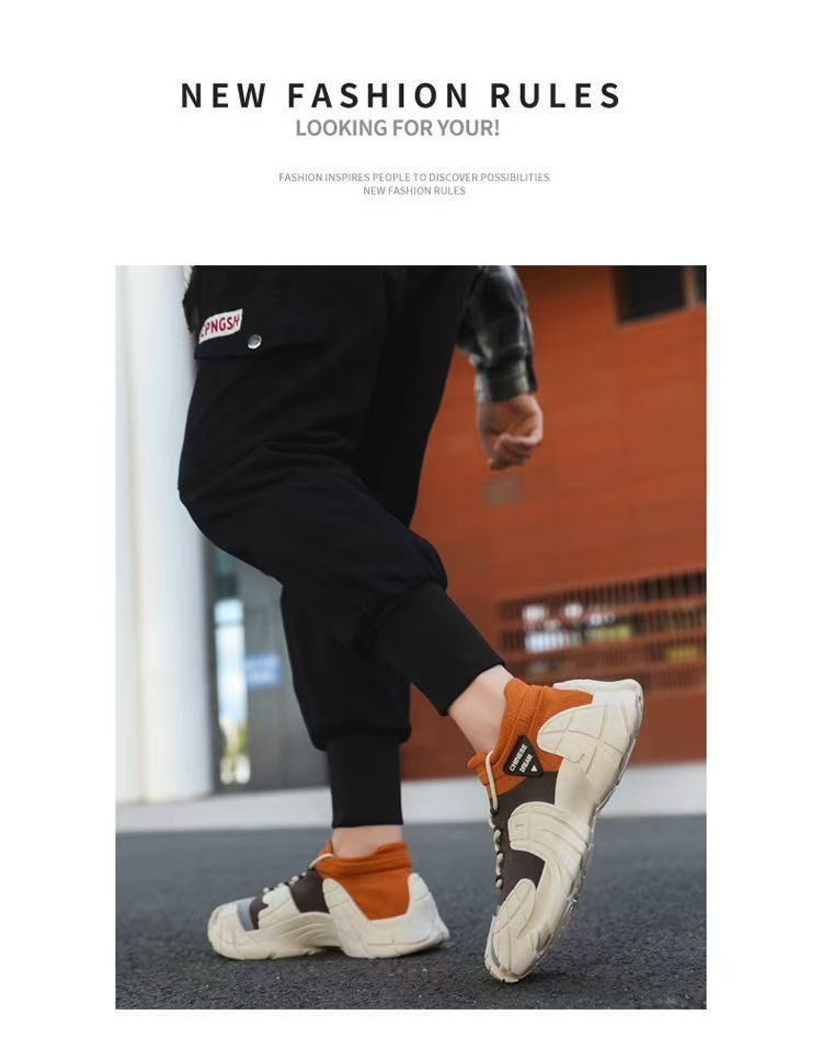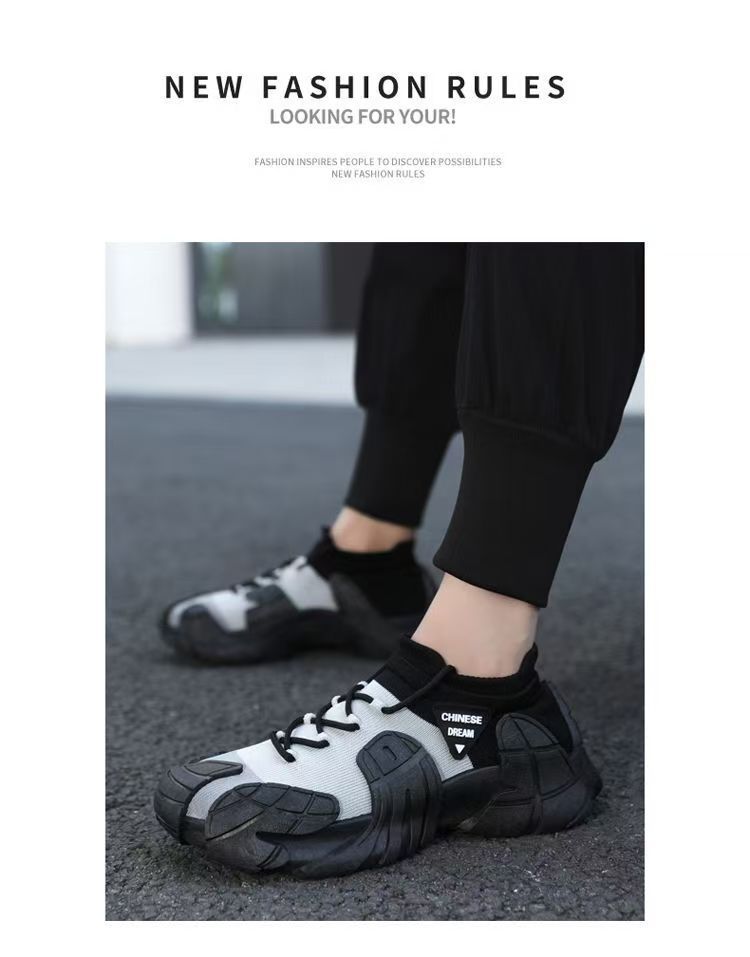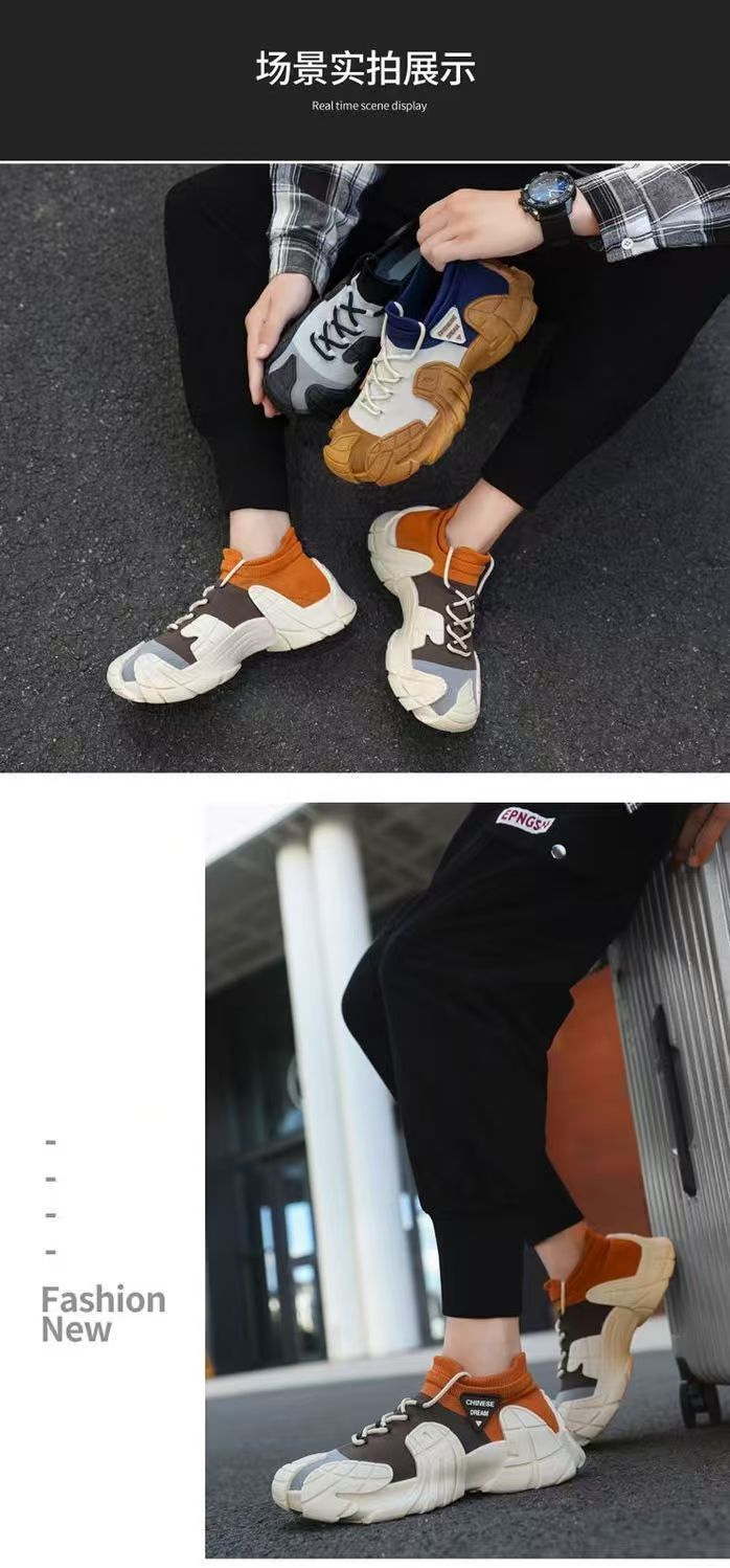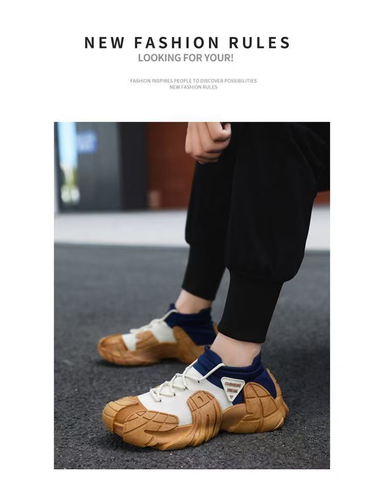 남성용 신발, 새로운 두꺼운 밑창의 가벼운 플라이 니트 양말 신발, 남성 캐주얼 신발, 패셔너블한 배색 통기성 운동화
