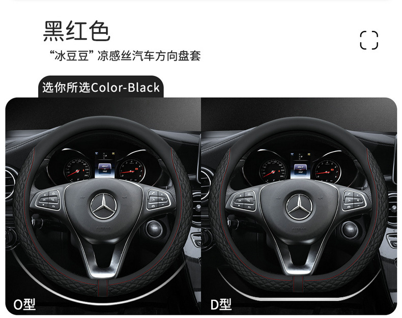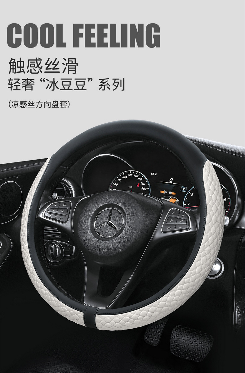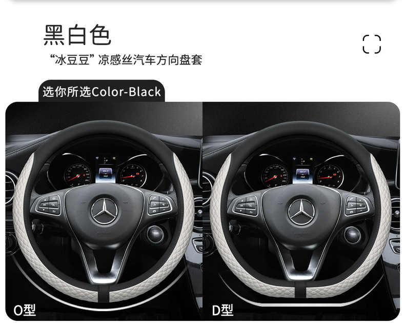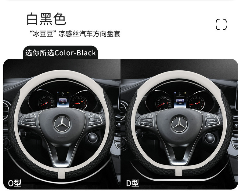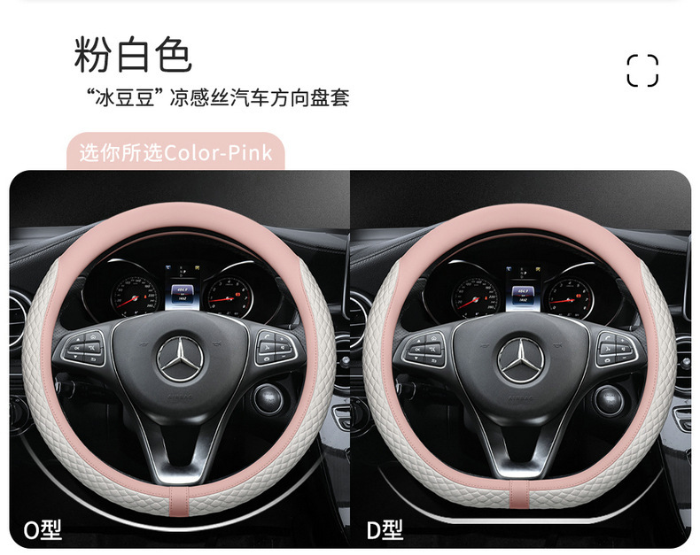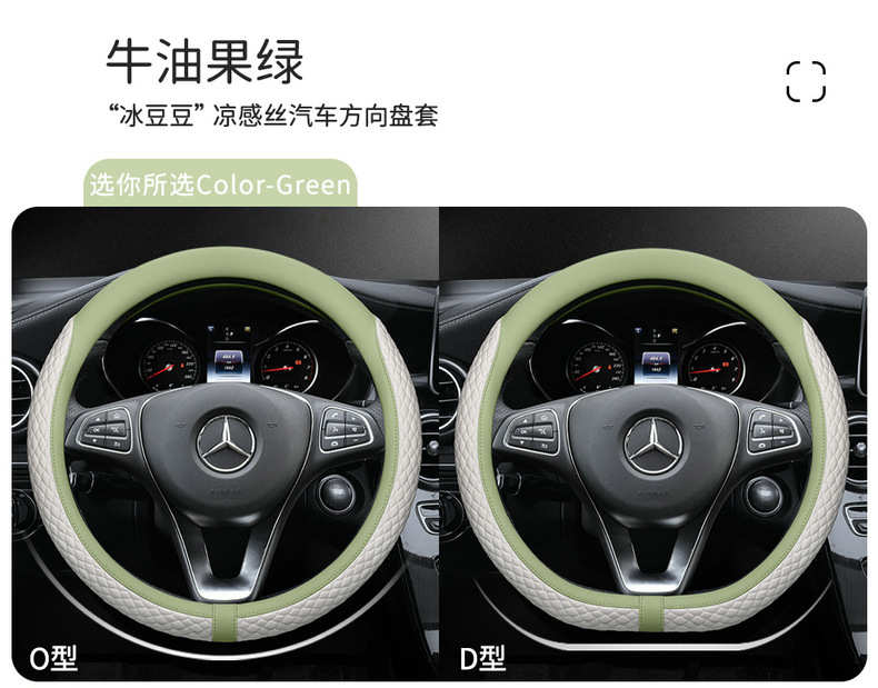 자동차 스티어링 휠 커버 새로운 얼음 콩 시원한 실크 여름 귀여운 숙녀 커버 통기성 미끄럼 방지 땀 흡수성 D 타입