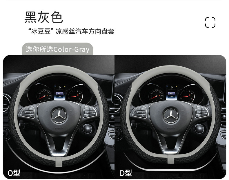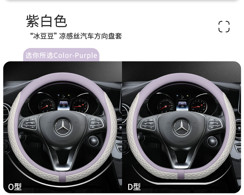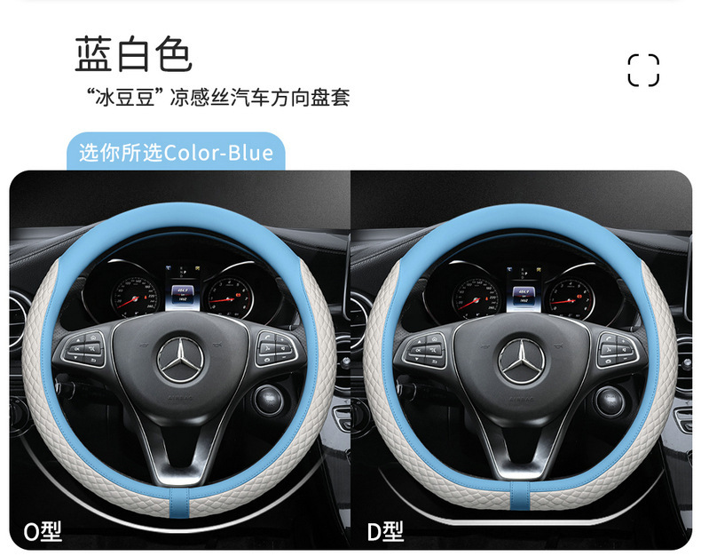자동차 스티어링 휠 커버 새로운 얼음 콩 시원한 실크 여름 귀여운 숙녀 커버 통기성 미끄럼 방지 땀 흡수성 D 타입스토어 가기