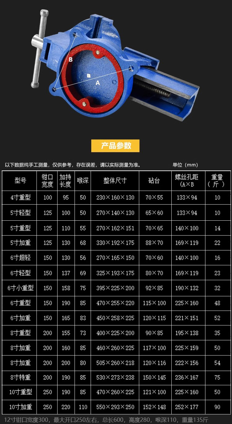 공장 직접 대형 바이스 산업 등급 8 인치 바이스 자동차 수리 다중 사양 이중 힘 바이스 플랫 입 펜치 도매스토어 가기