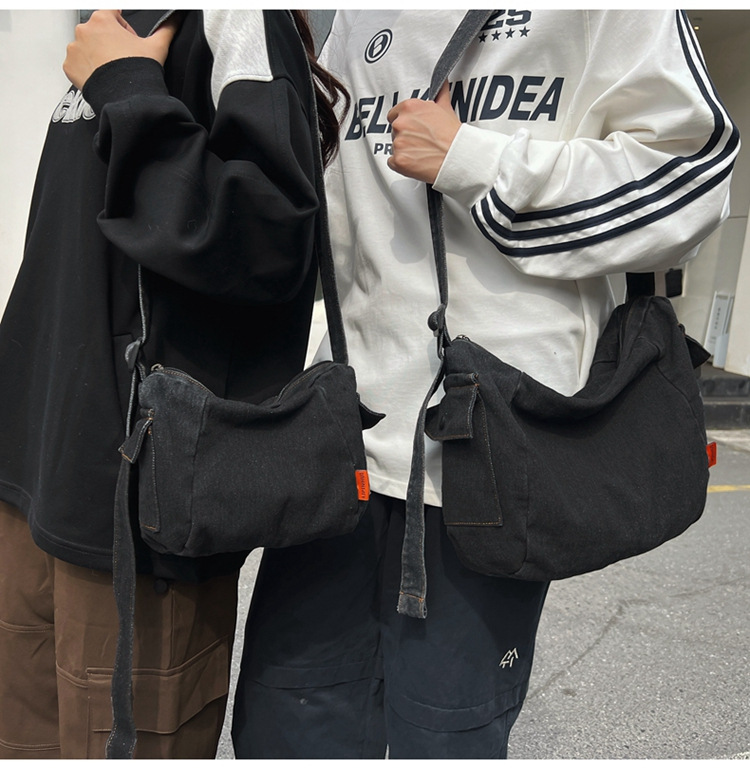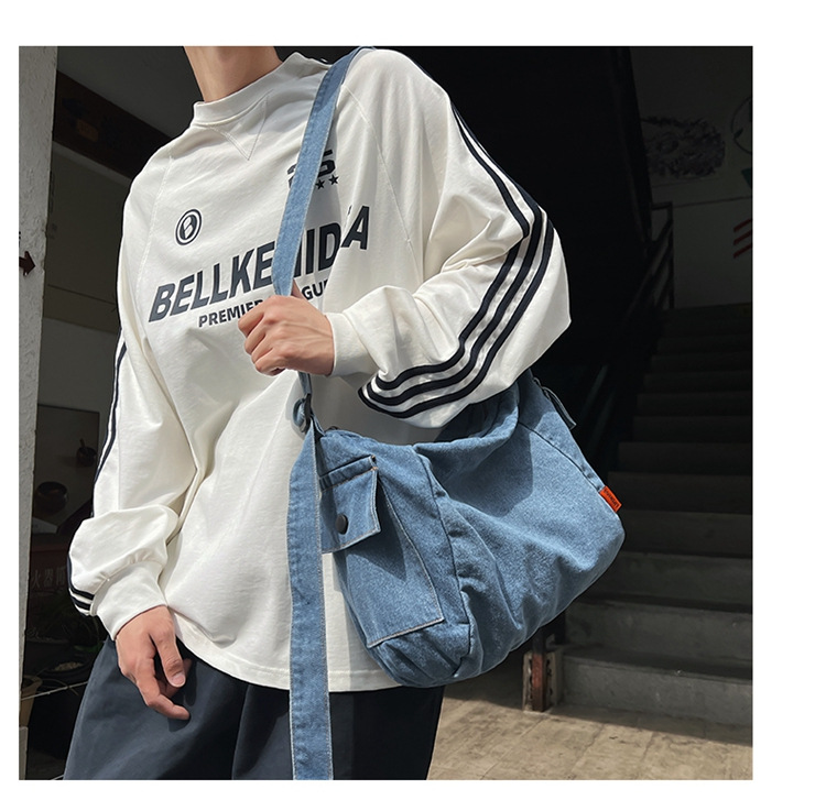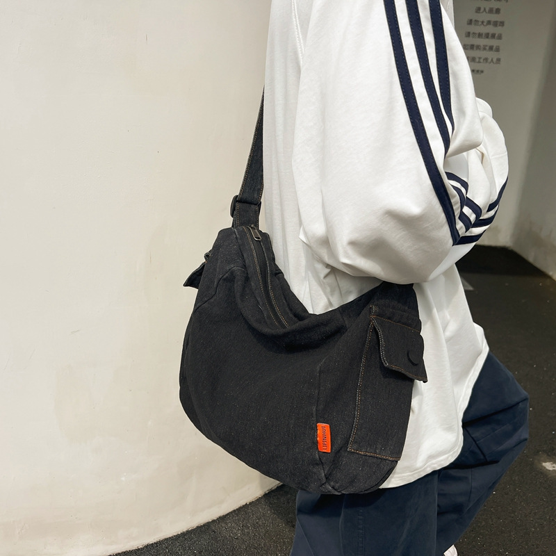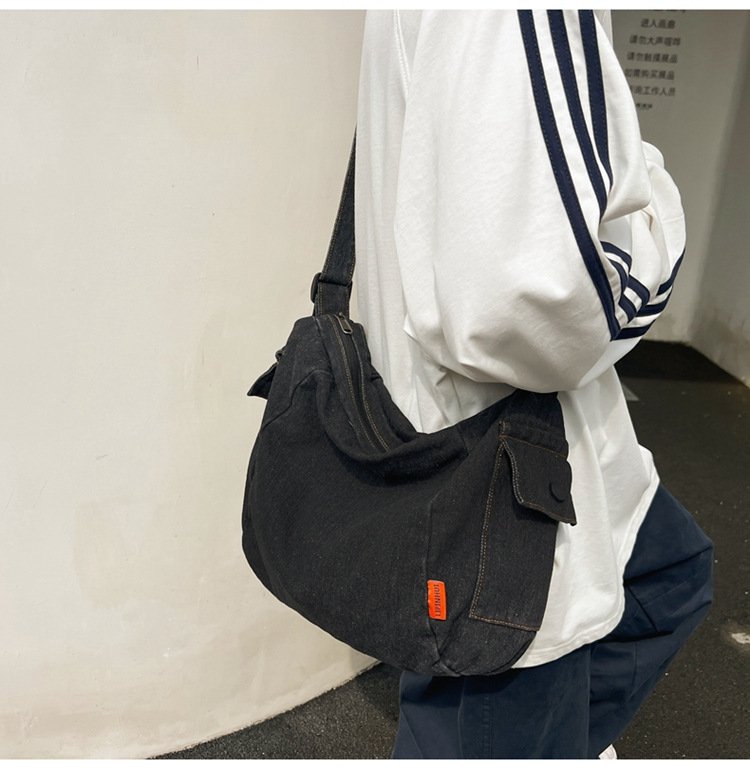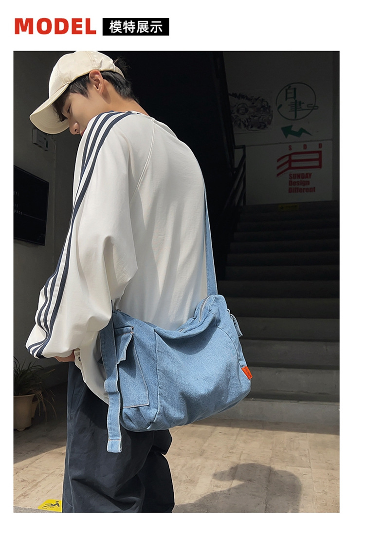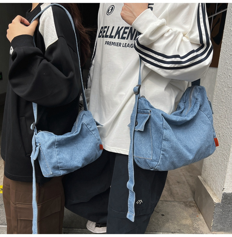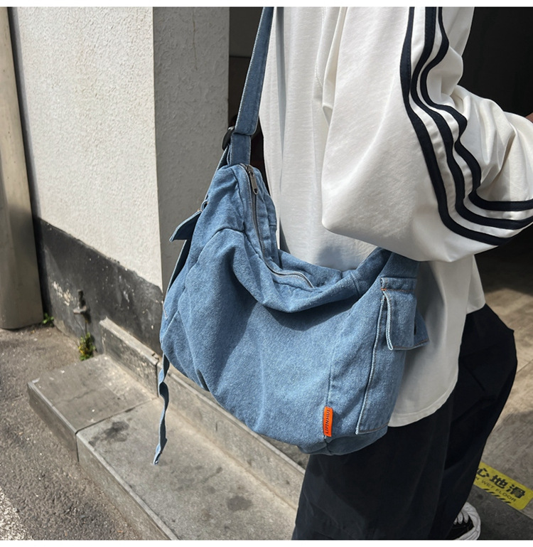 어깨 가방 남성과 여성의 캐주얼 2025 새로운 일본 스타일 간단한 데님 캔버스 가방 크로스 바디 백 대학생 포스트맨 천 가방스토어 가기