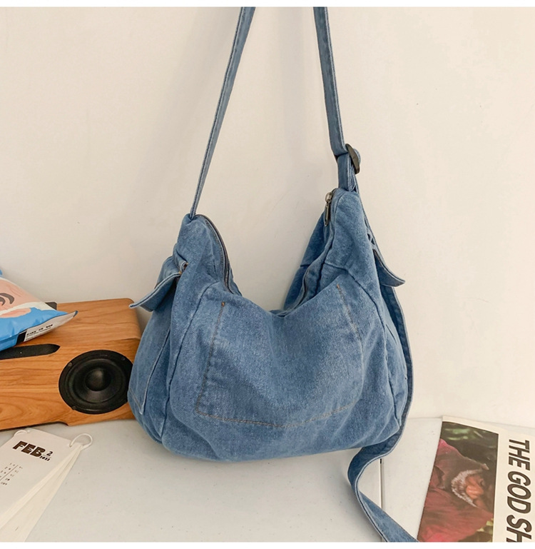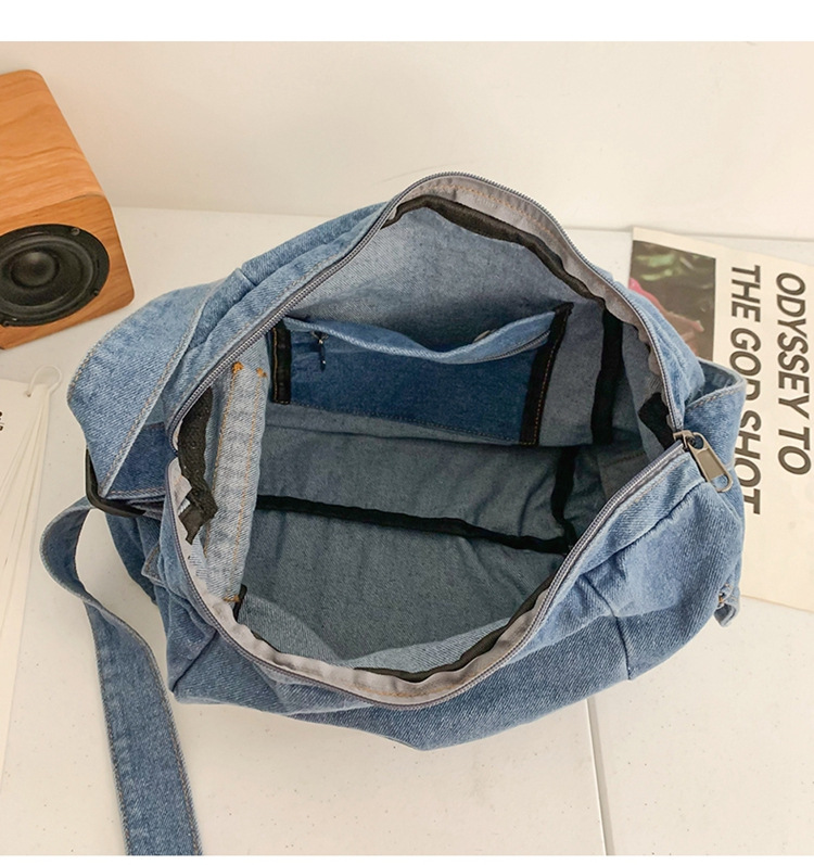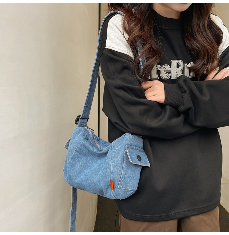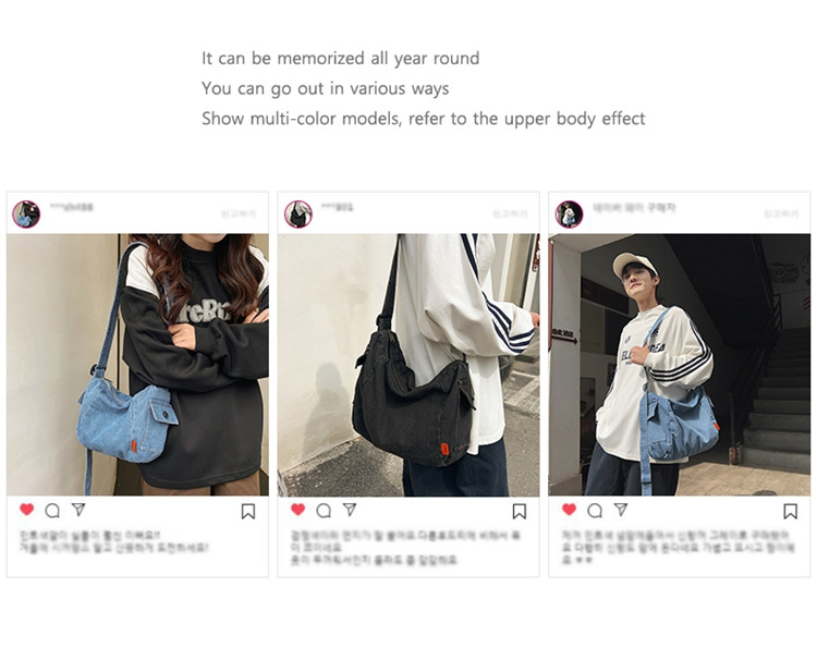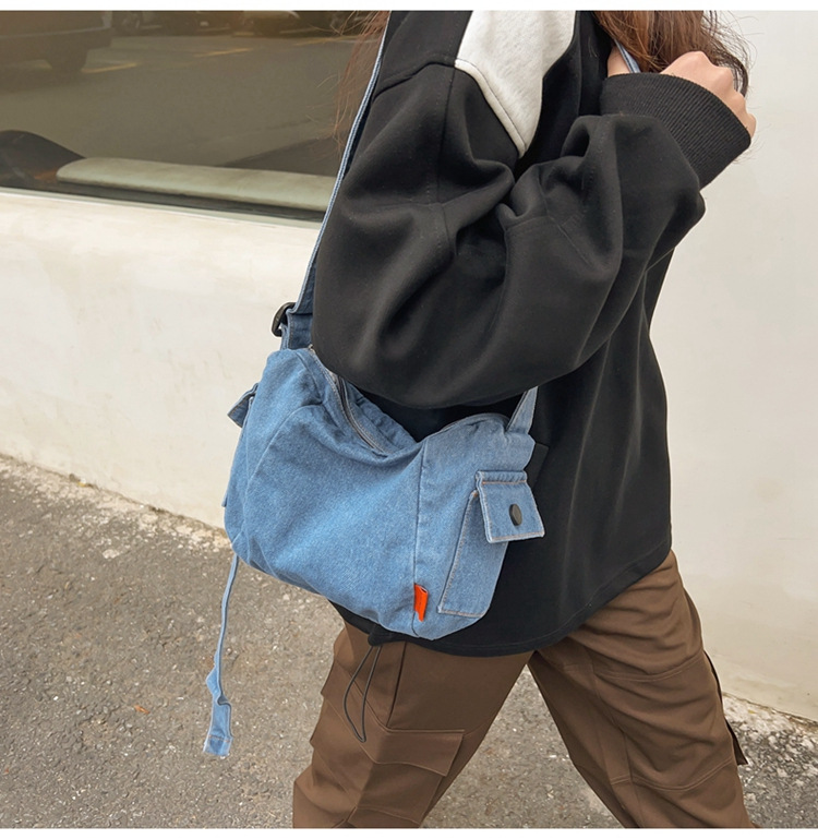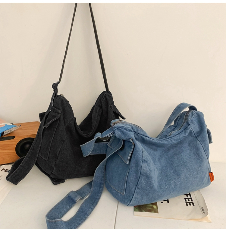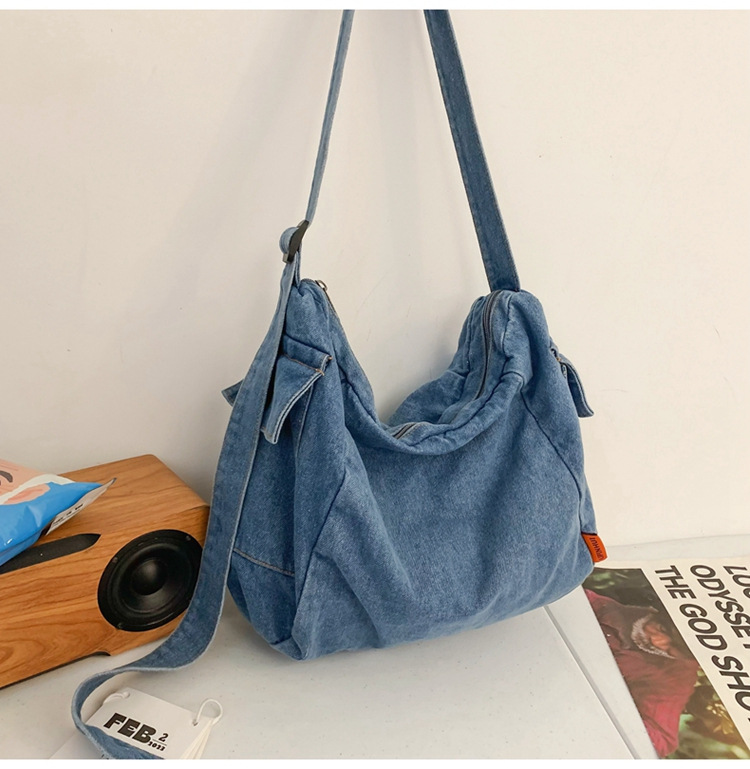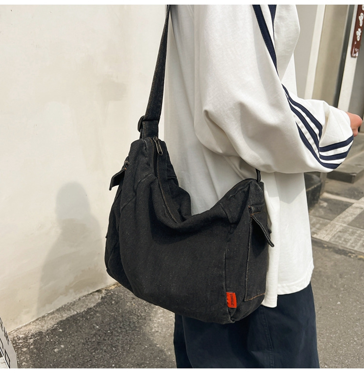 어깨 가방 남성과 여성의 캐주얼 2025 새로운 일본 스타일 간단한 데님 캔버스 가방 크로스 바디 백 대학생 포스트맨 천 가방스토어 가기