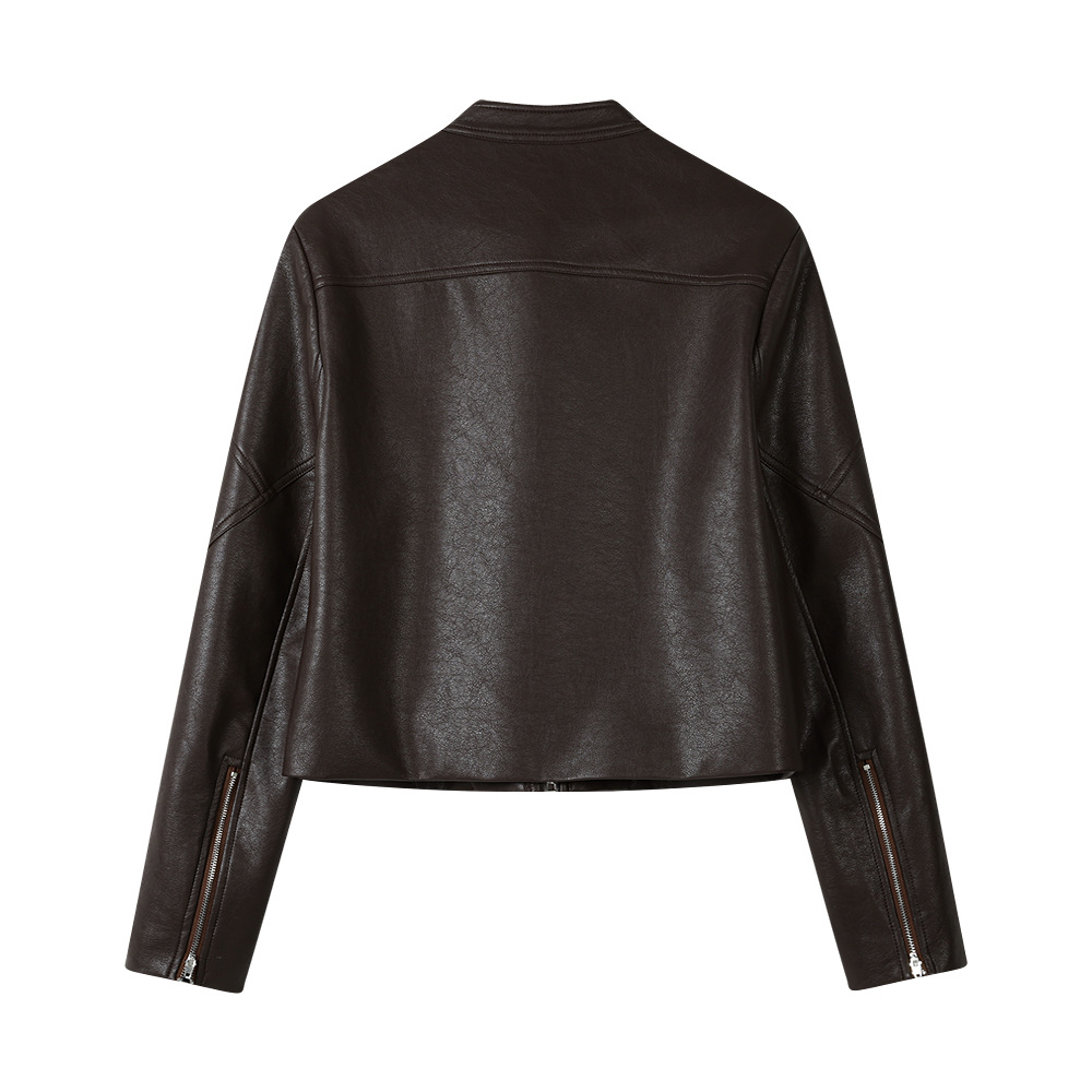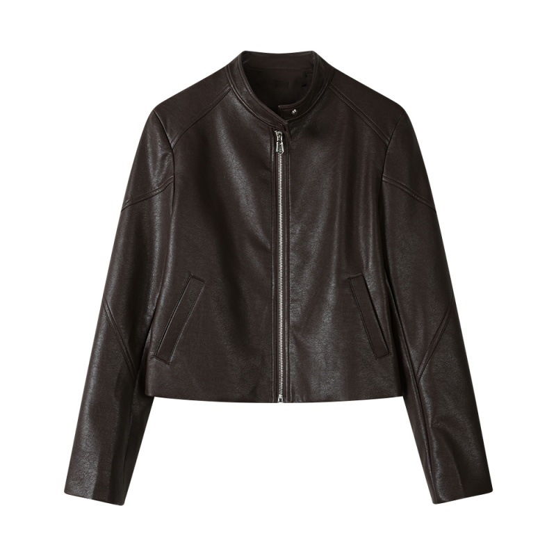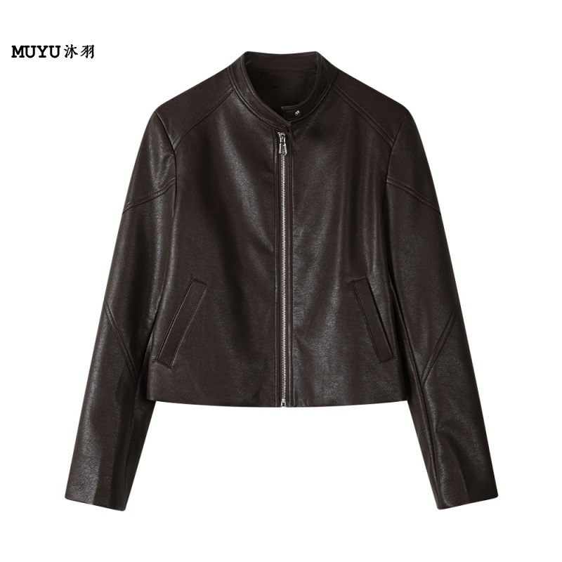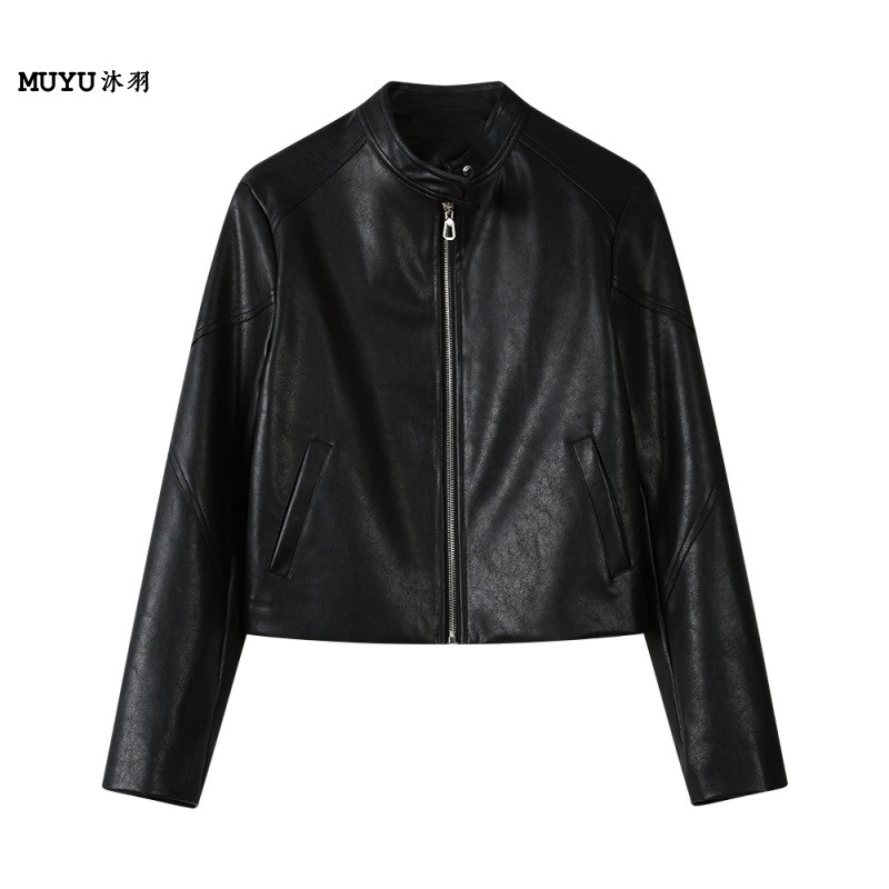MUYU 메일라드 스타일 레트로 PU 가죽 바이커 재킷 여성용 봄 유행 숏 가죽 재킷 트렌디스토어 가기