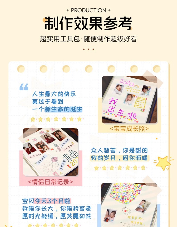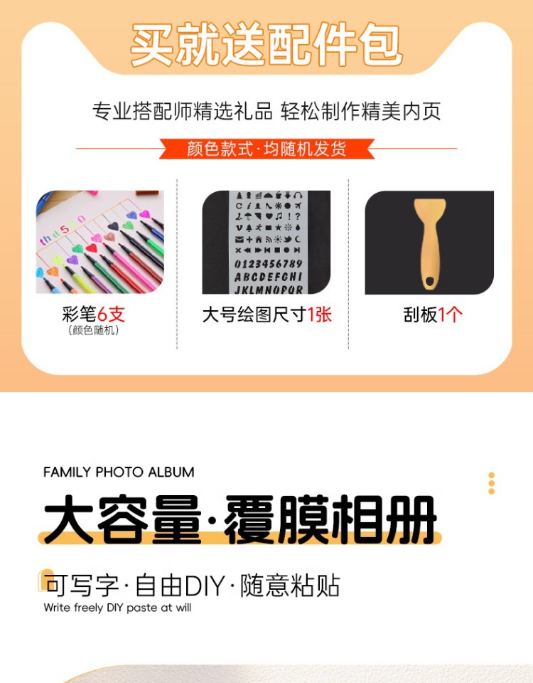 • 60매(120면) 두꺼운 흰색 페이지 + 선물 가방 + 메모 + 보관 가방 + 특수 스티커