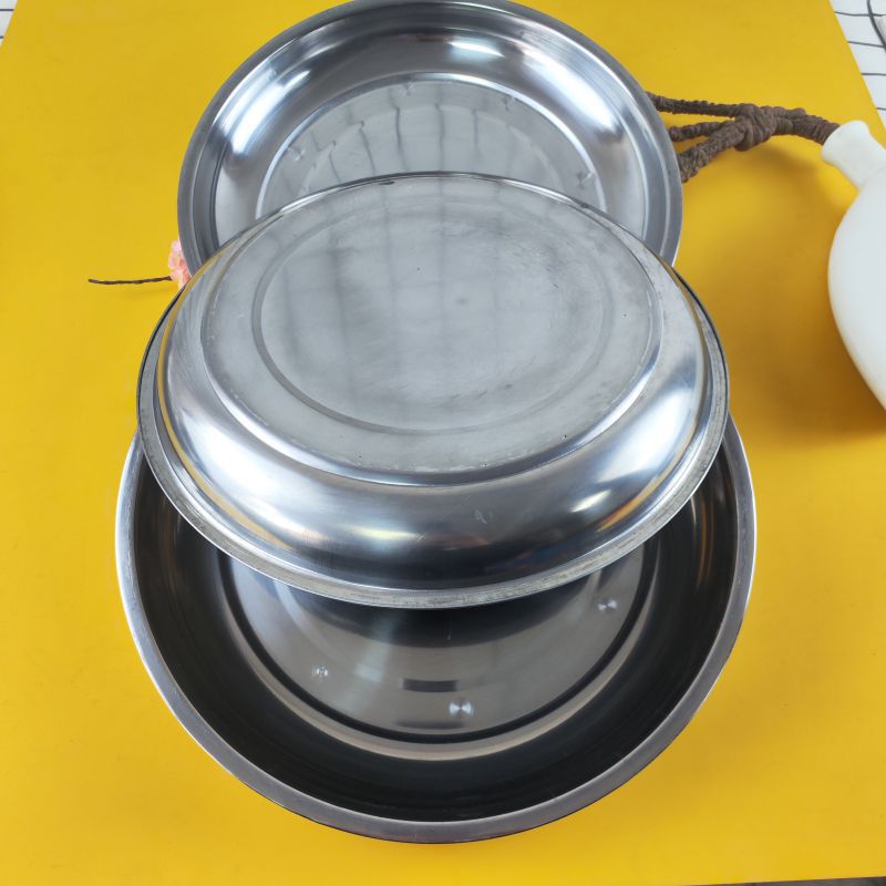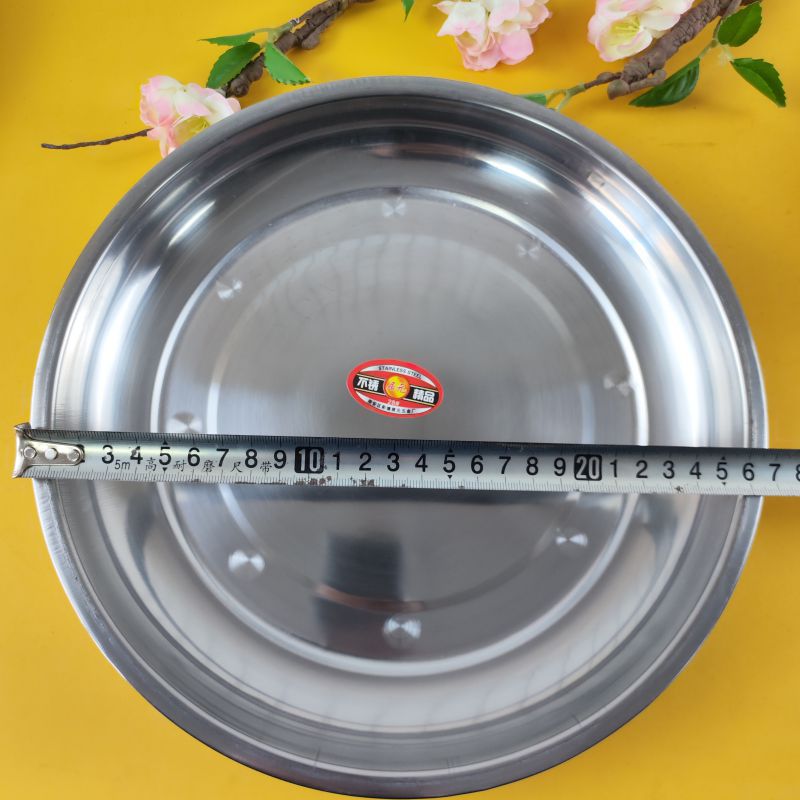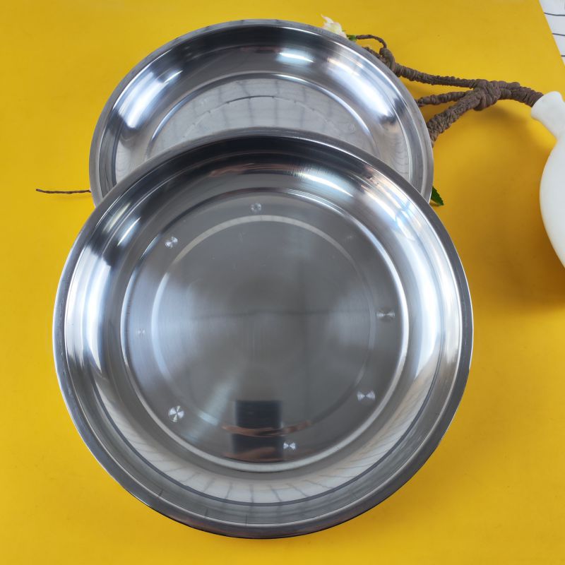 2 위안 스테인레스 스틸 도매 28cm 평판 스테인레스 스틸 디스크 접시 2 위안 일일 필수품 공급