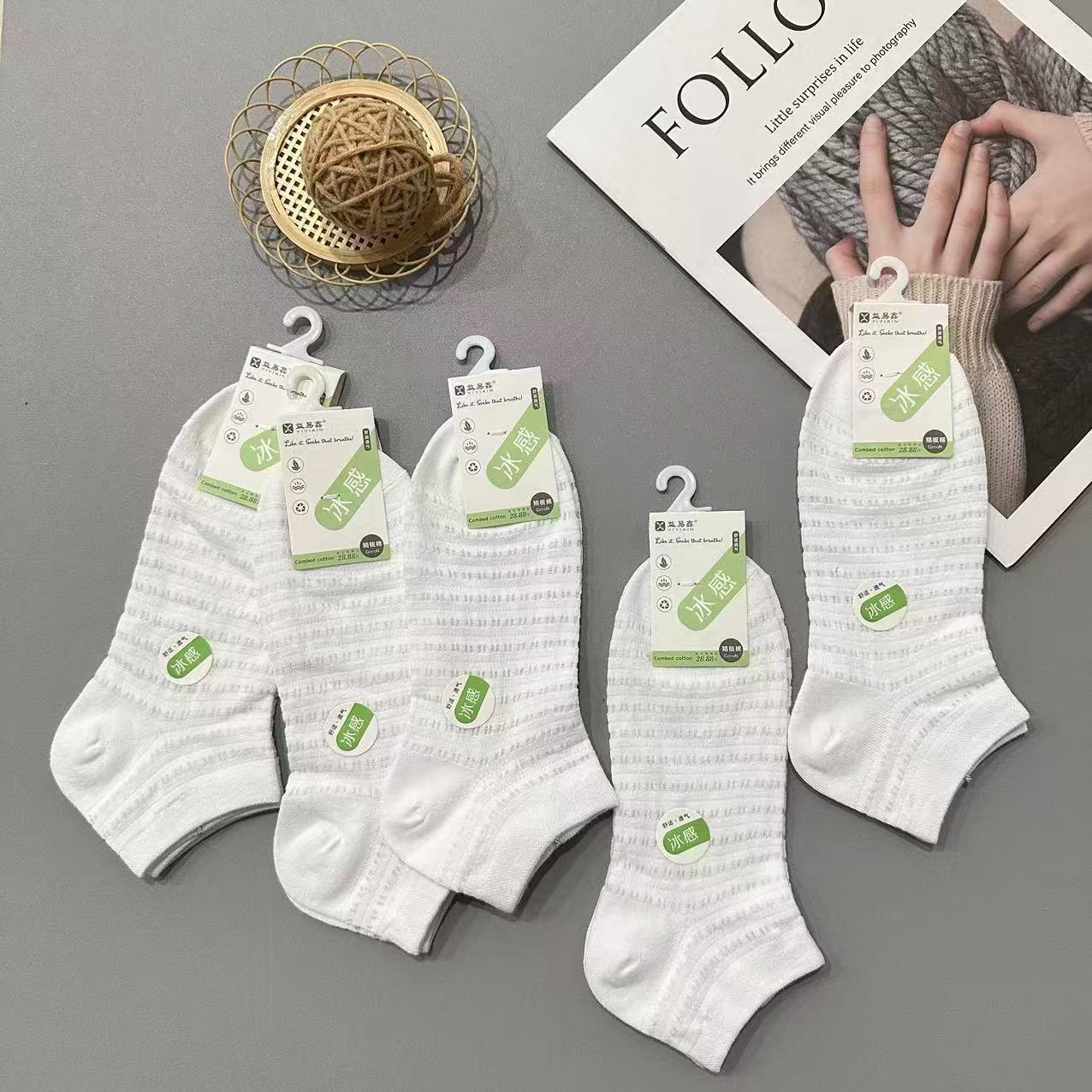 이이신 봄 여름 신상 남녀공용 메쉬 초박형 홀삭 양말, 아이스 느낌의 짧은 양말, 부드럽고 통기성이 좋으며 보풀이 없는 보트 양말