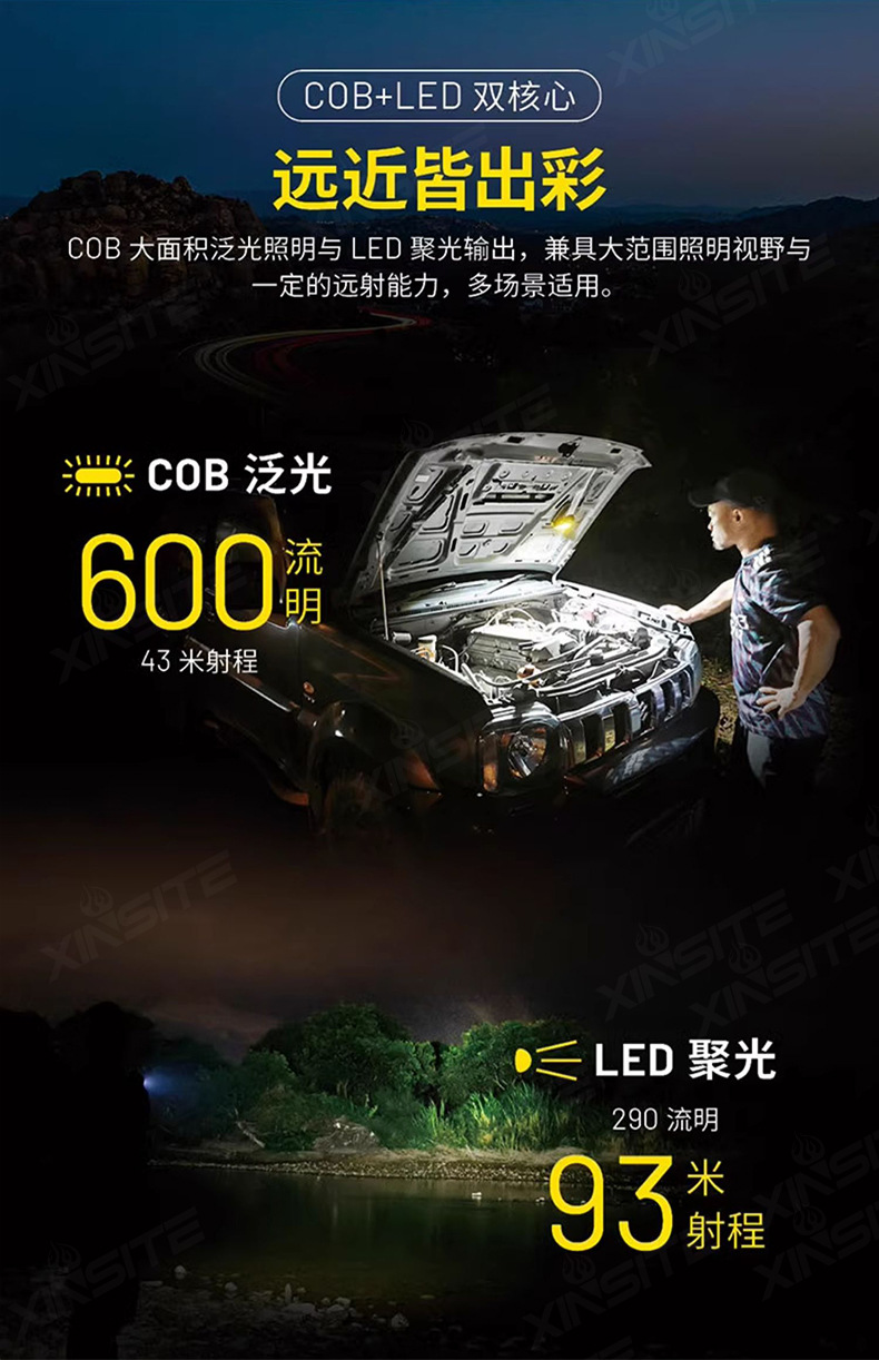 국경 간 새로운 COB 접이식 작업 조명 USB 충전 자석 LED 장거리 라이트 자동차 유지 보수 조명